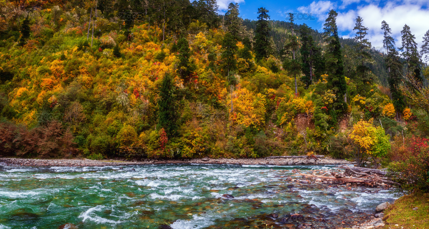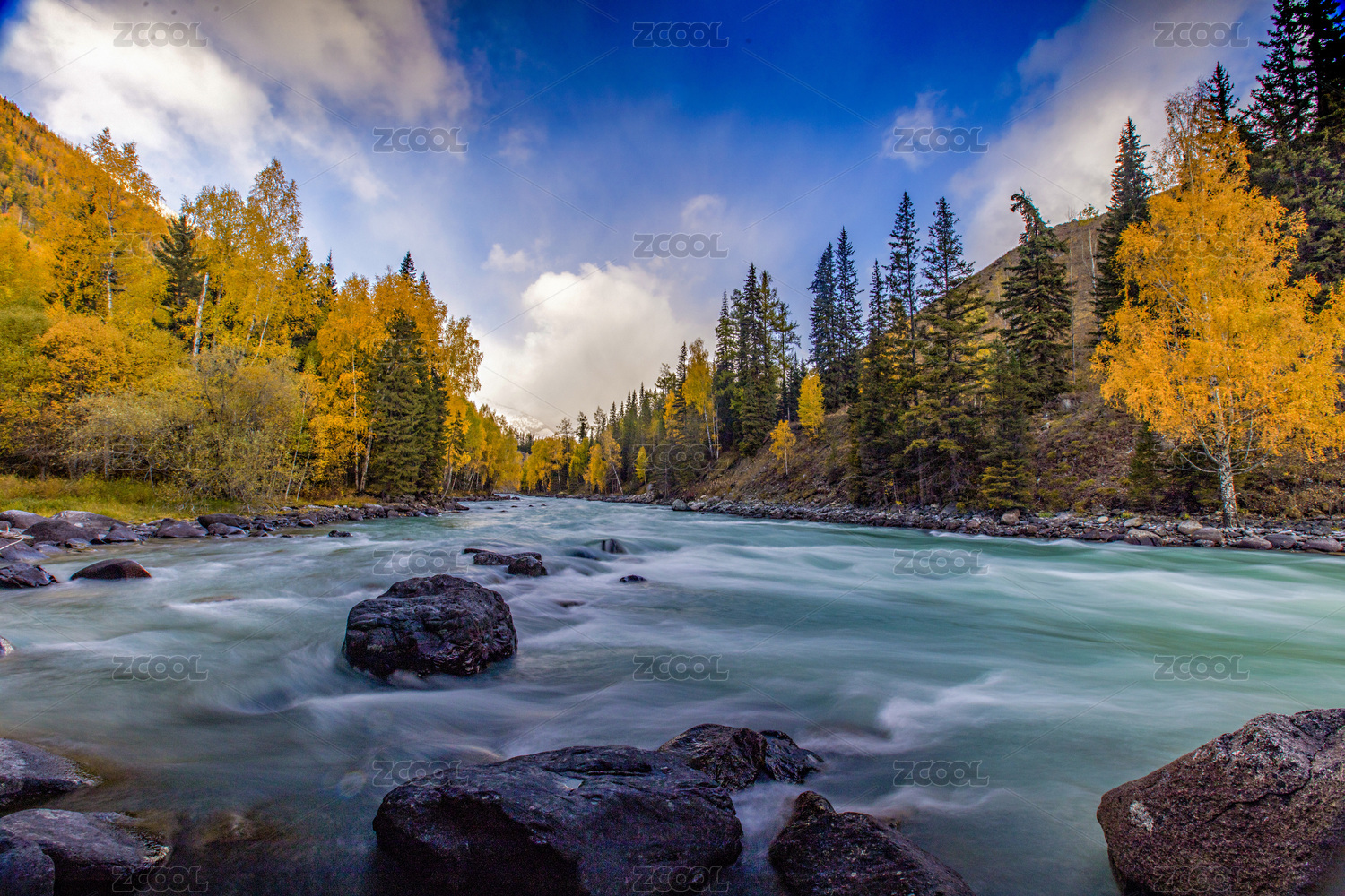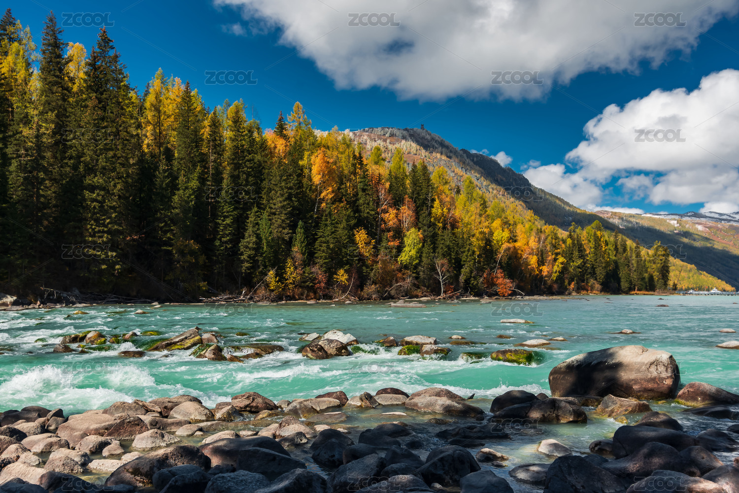 中国新疆阿勒泰布尔津喀纳斯秋季的风光