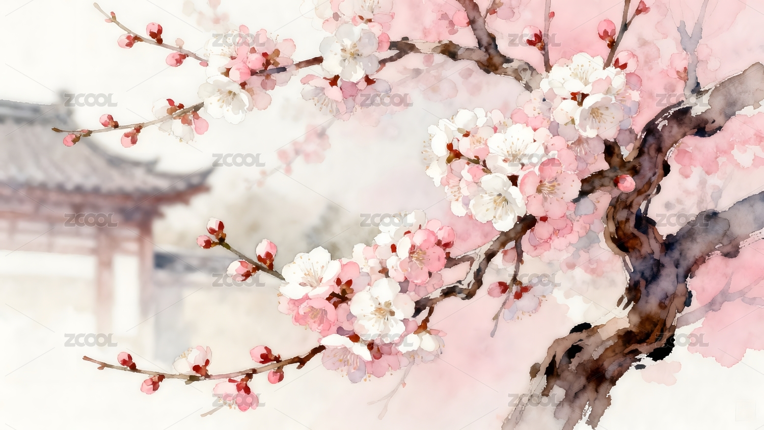 水墨画梅花桃花
