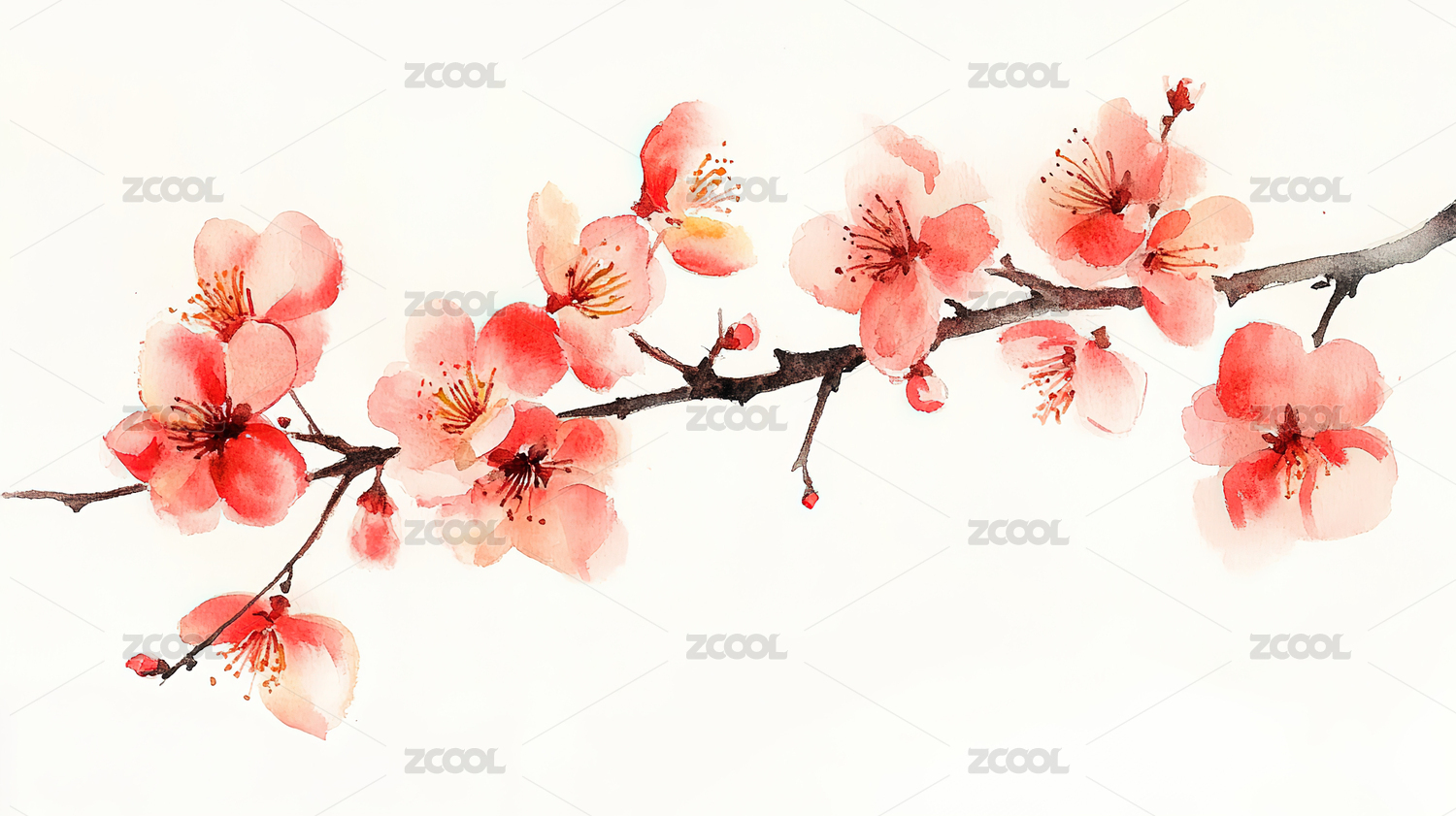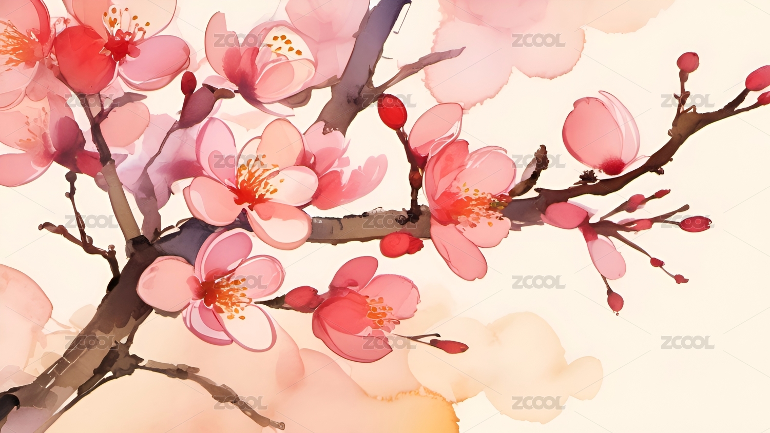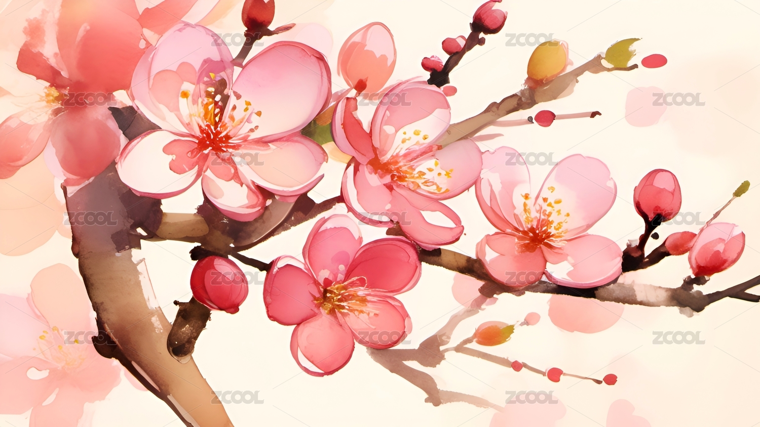 水彩,梅花,插画,治愈,教育,壁纸,春天,花卉