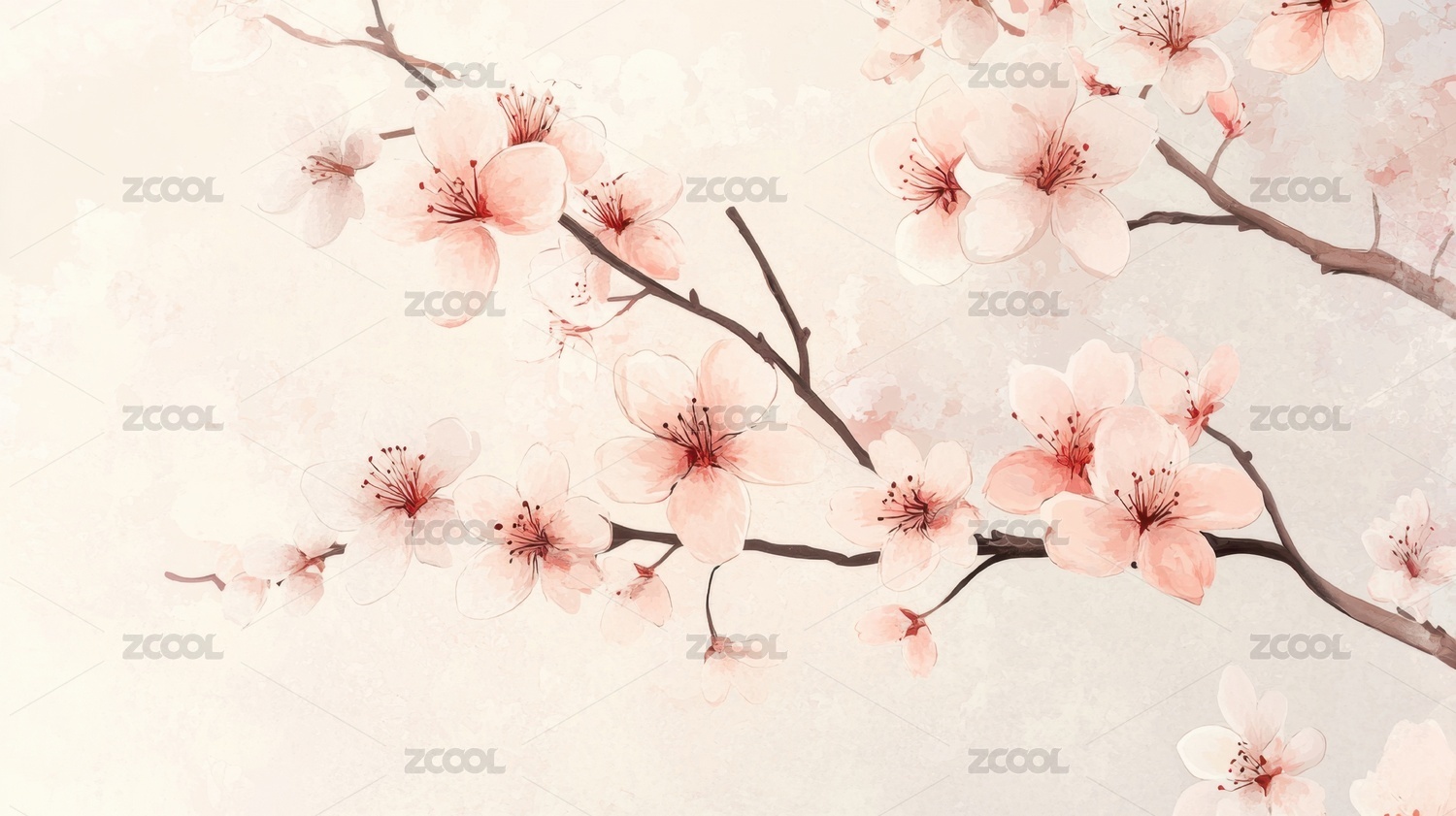 粉嫩樱花水彩画