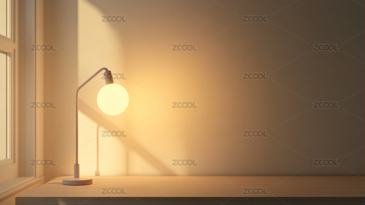 窗户光影下的台灯