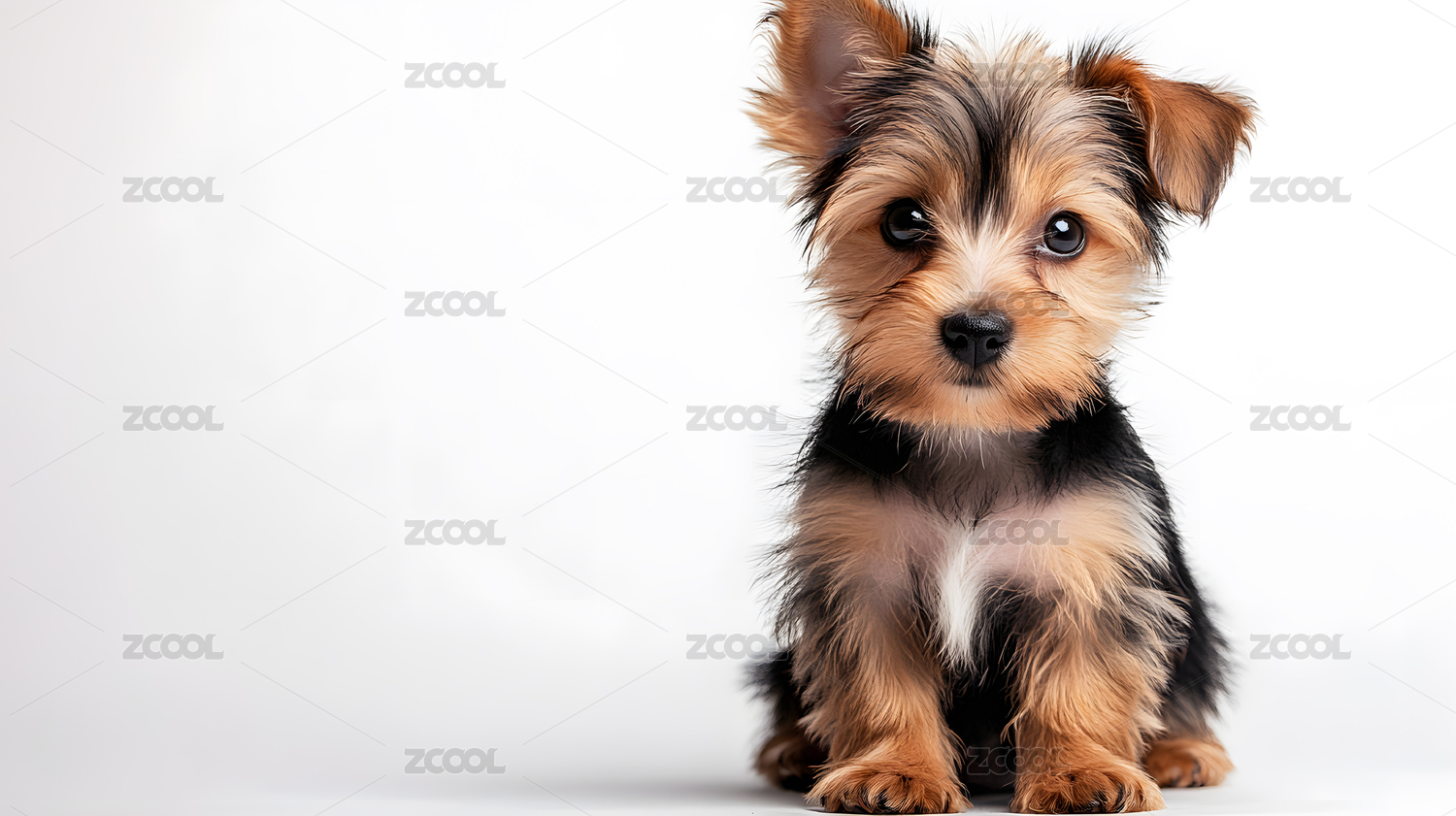 可爱的小狗坐在白色背景前
