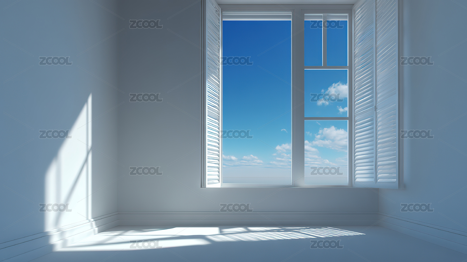 打开的窗户与蓝天白云