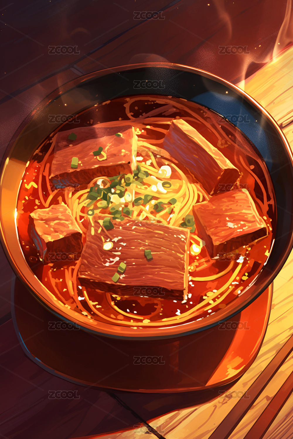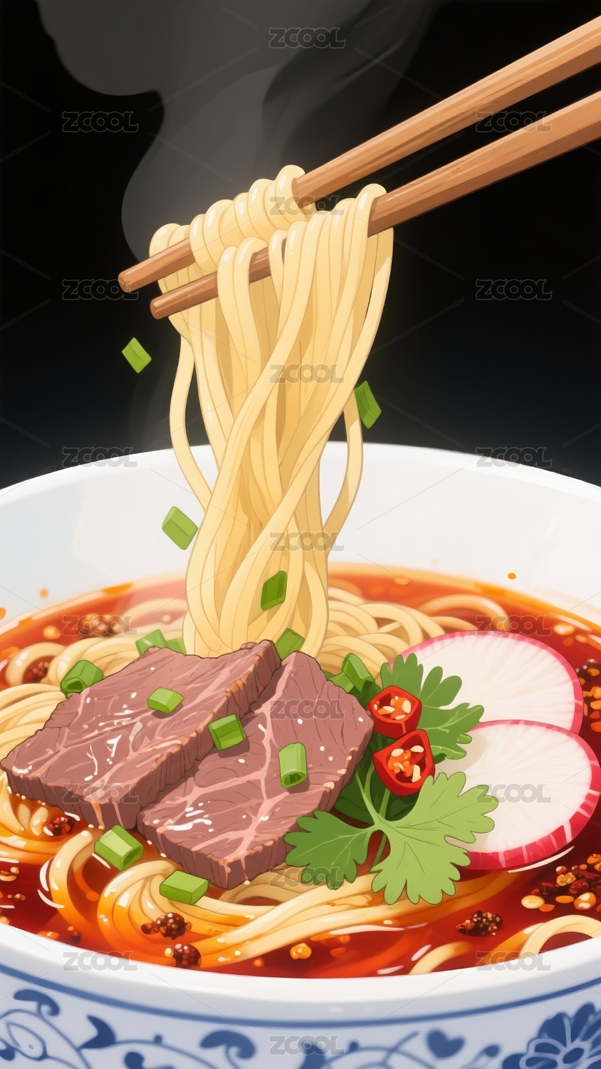 兰州拉面碗中的清澈牛肉汤与筋道面条