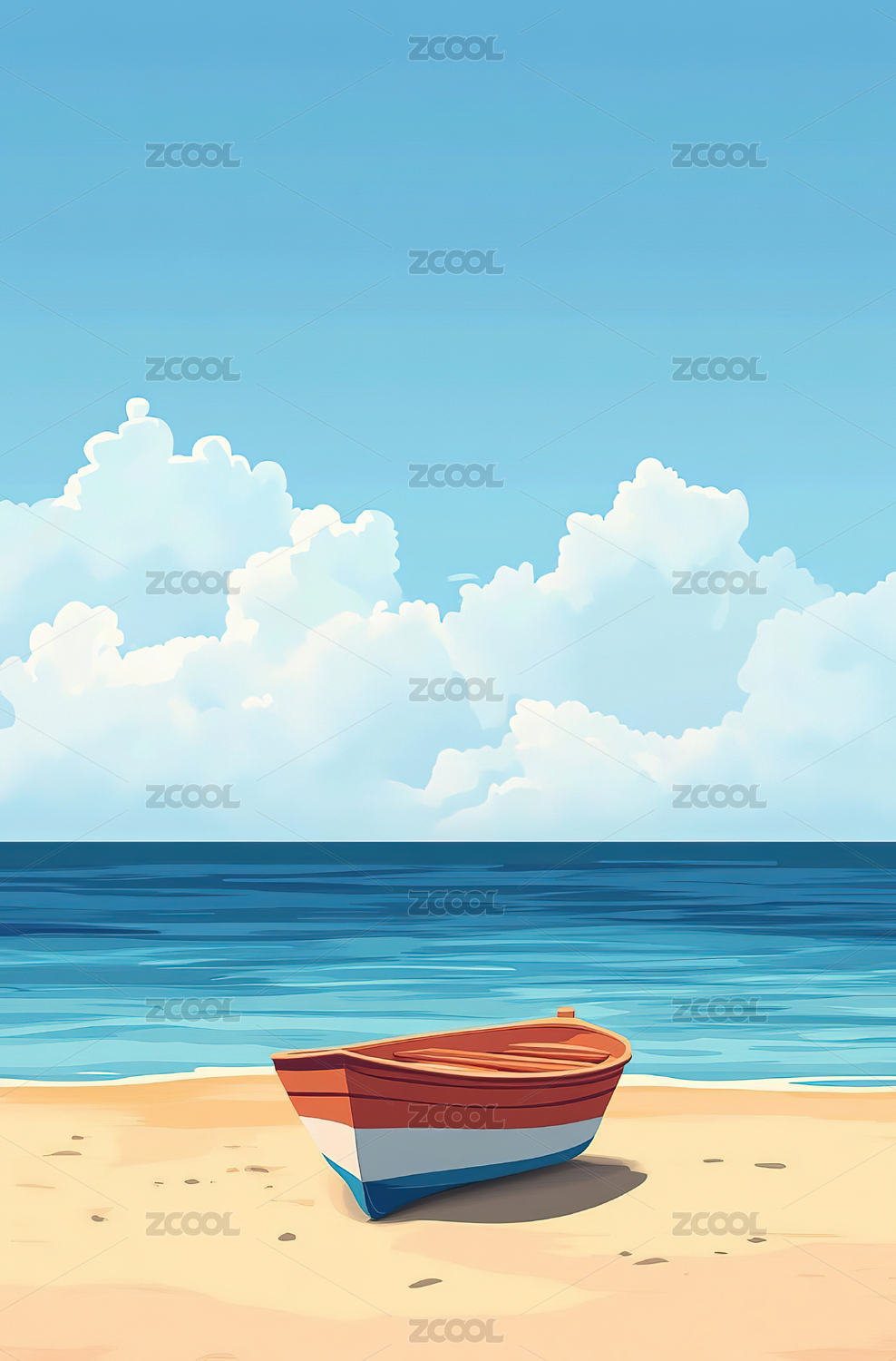海滨小船风景插画装饰设计素材