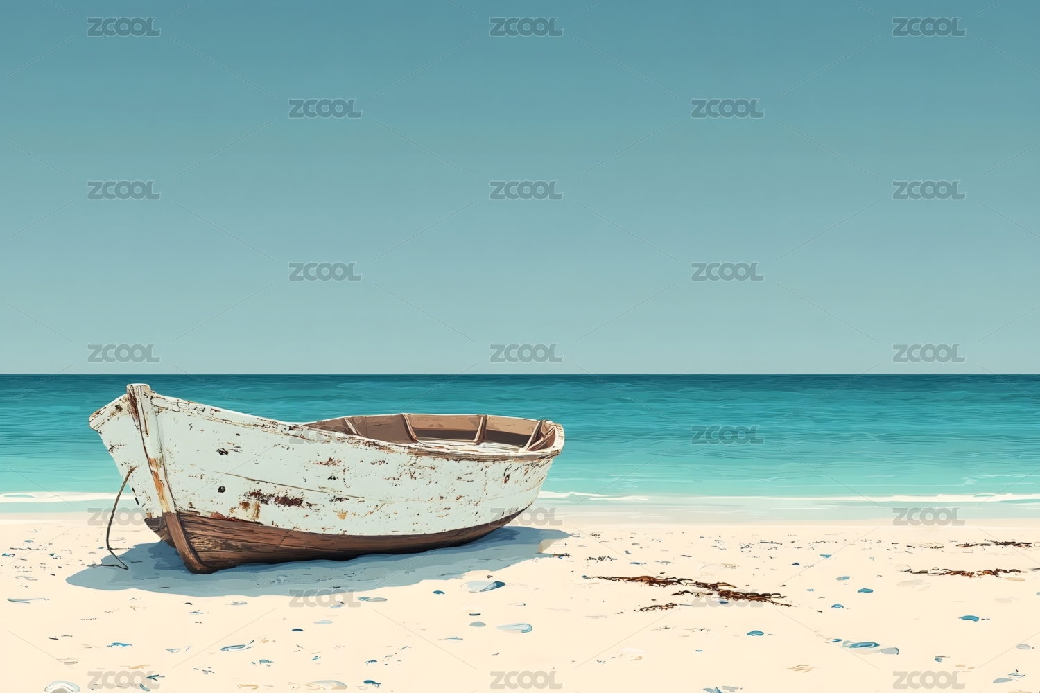 海边孤舟停靠静谧海滩