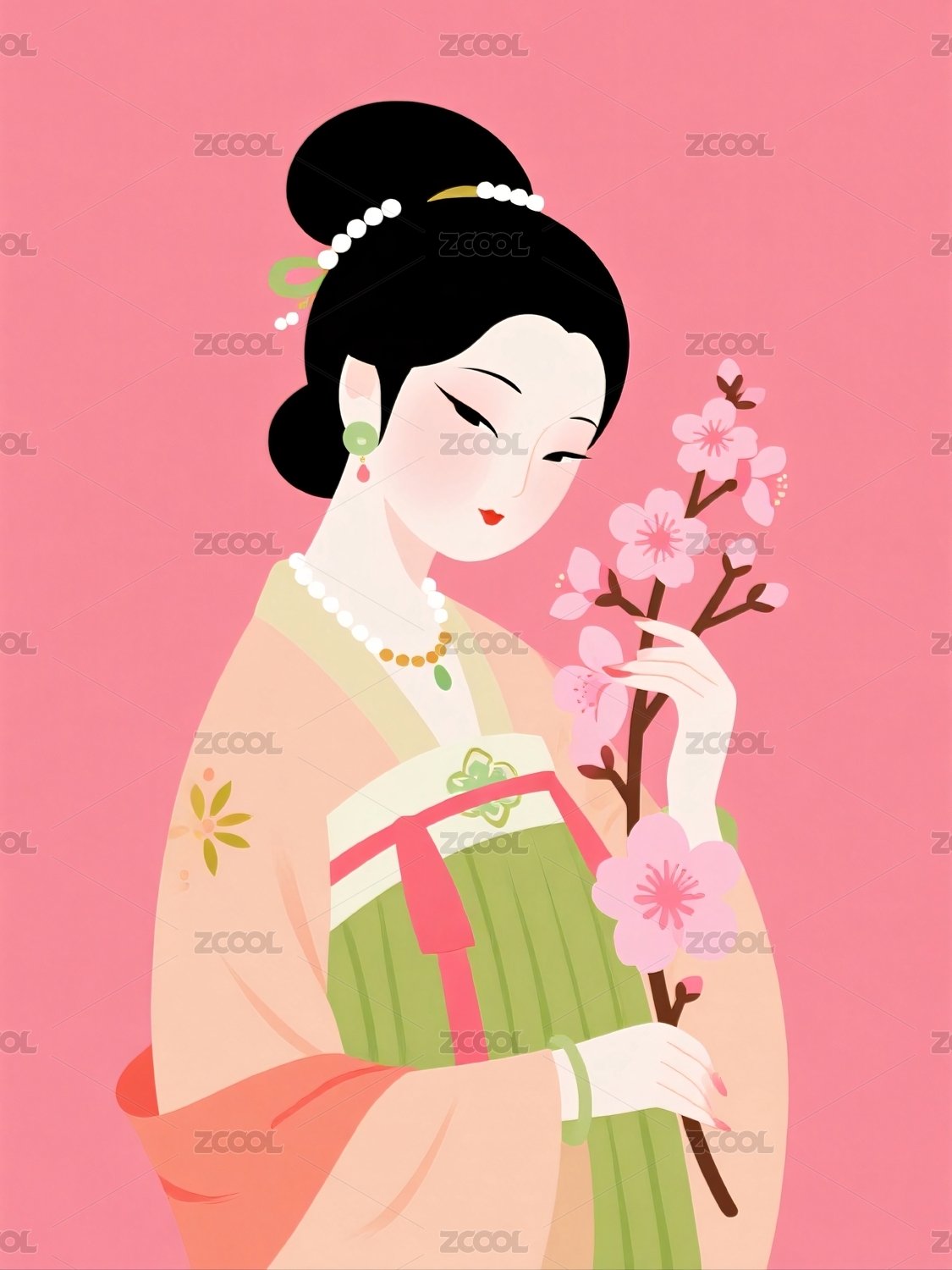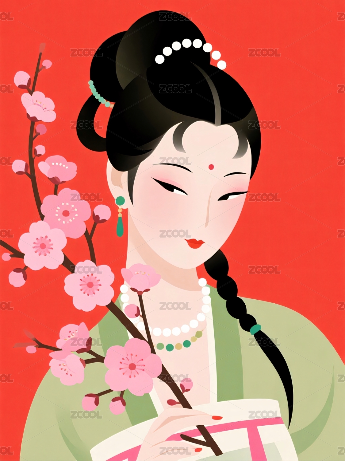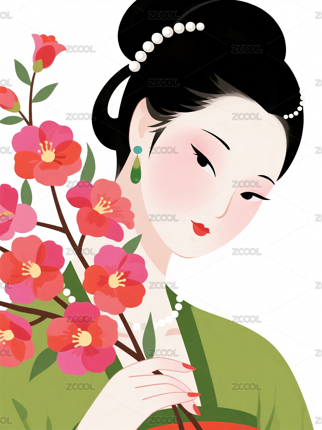 人物,汉服,国潮,古风,女人,美女,数字,插画,影像,绘画