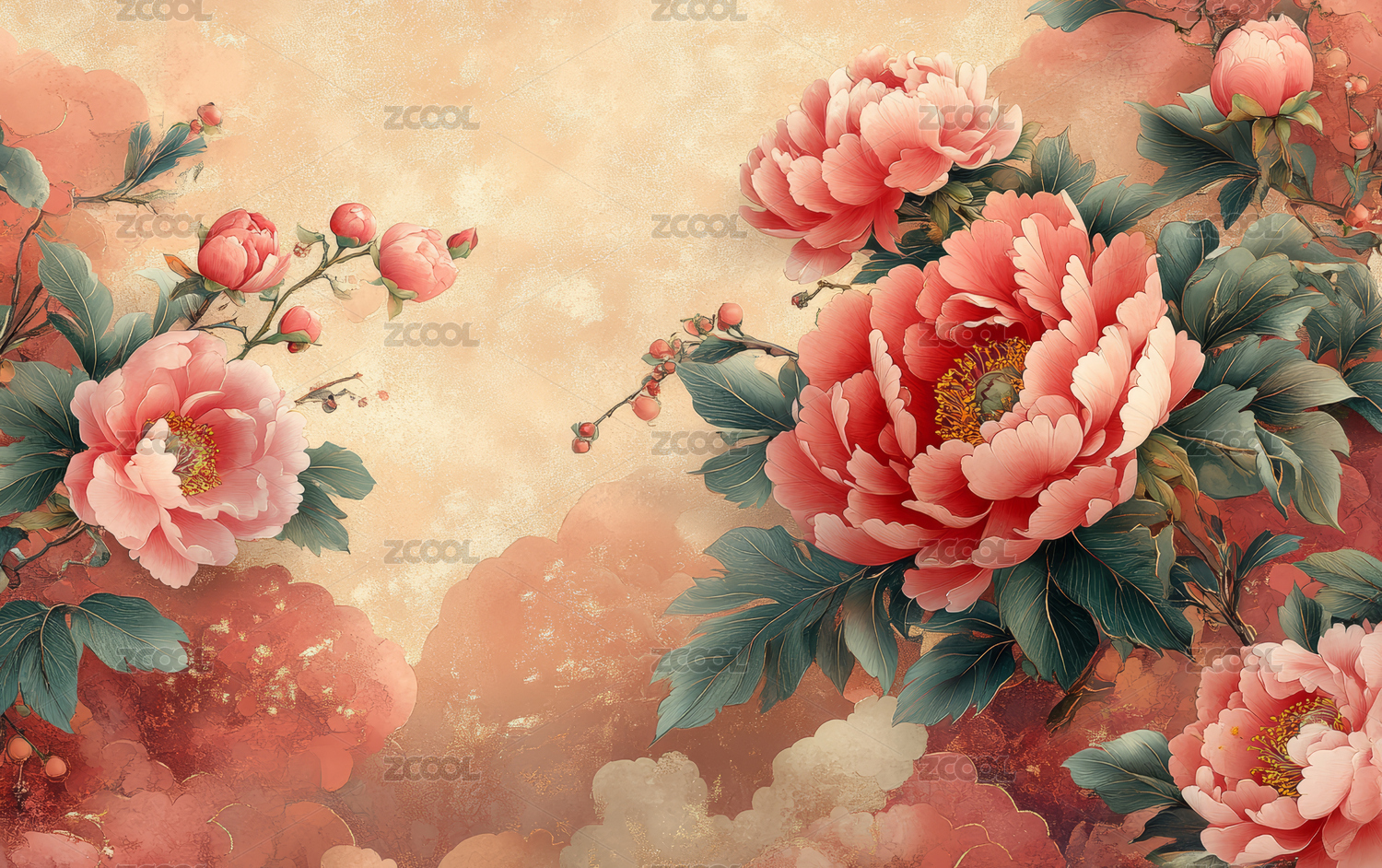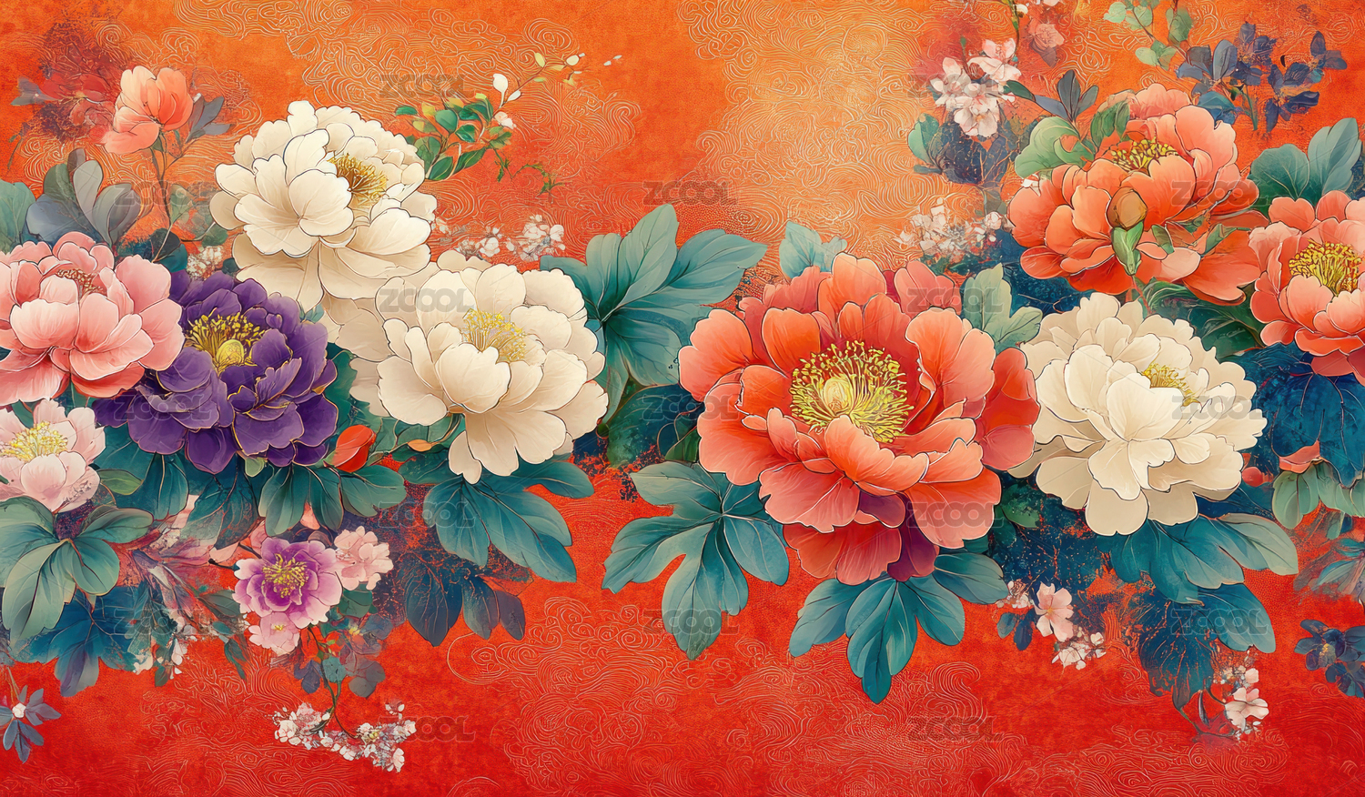 中国元素,传统文化,牡丹花,花卉,国花,绘画,艺术,纹理,线条,色彩