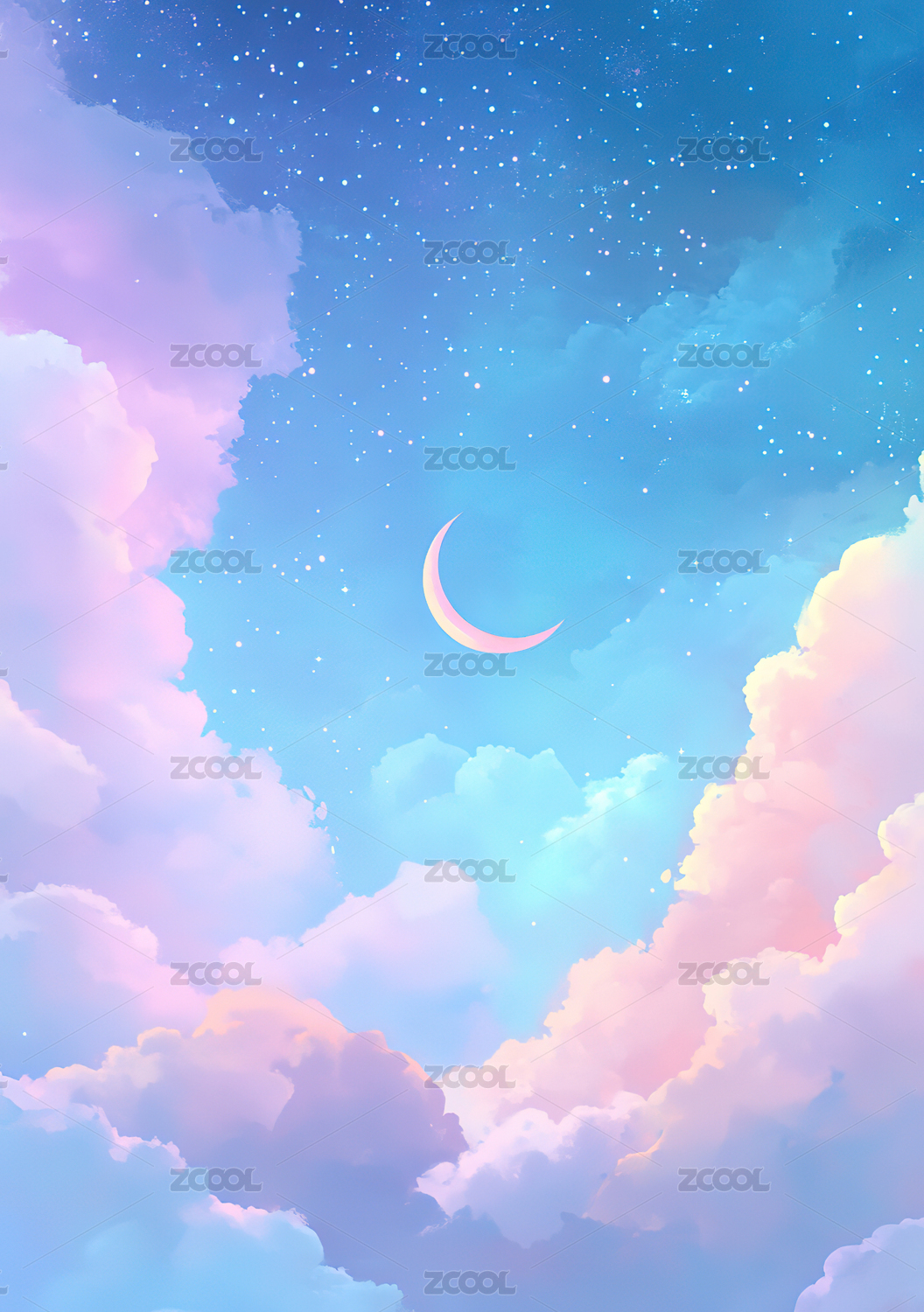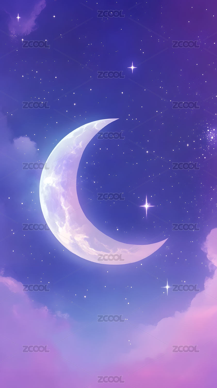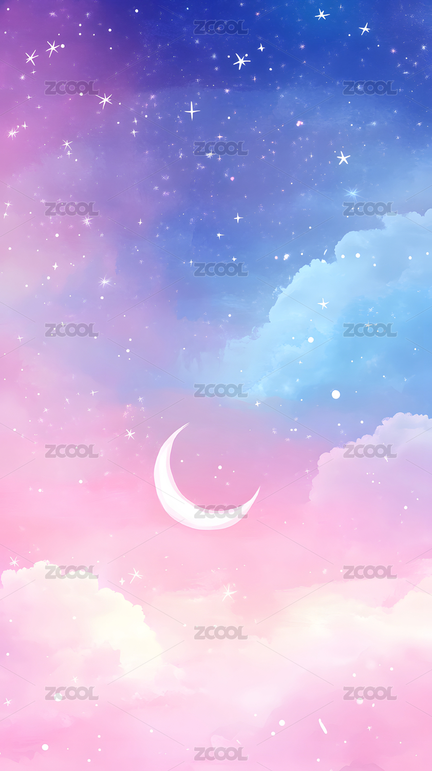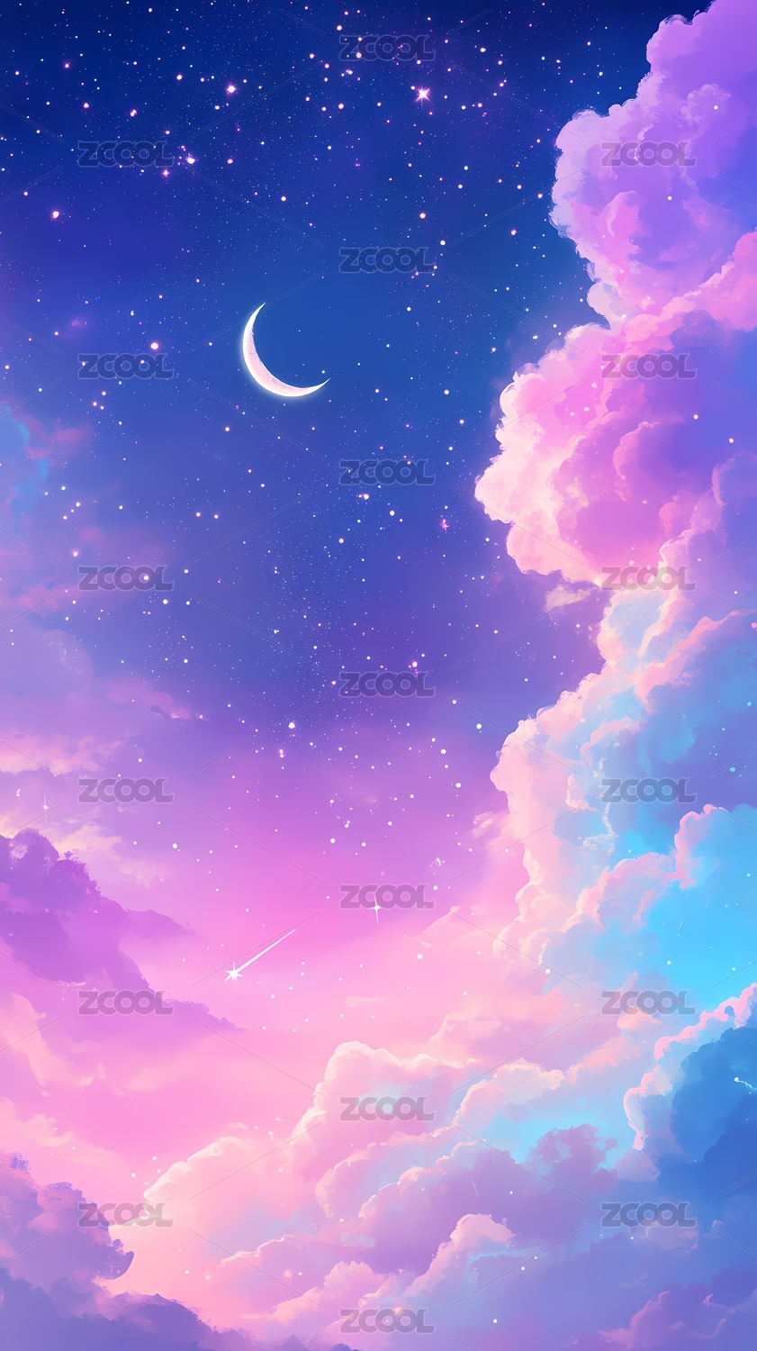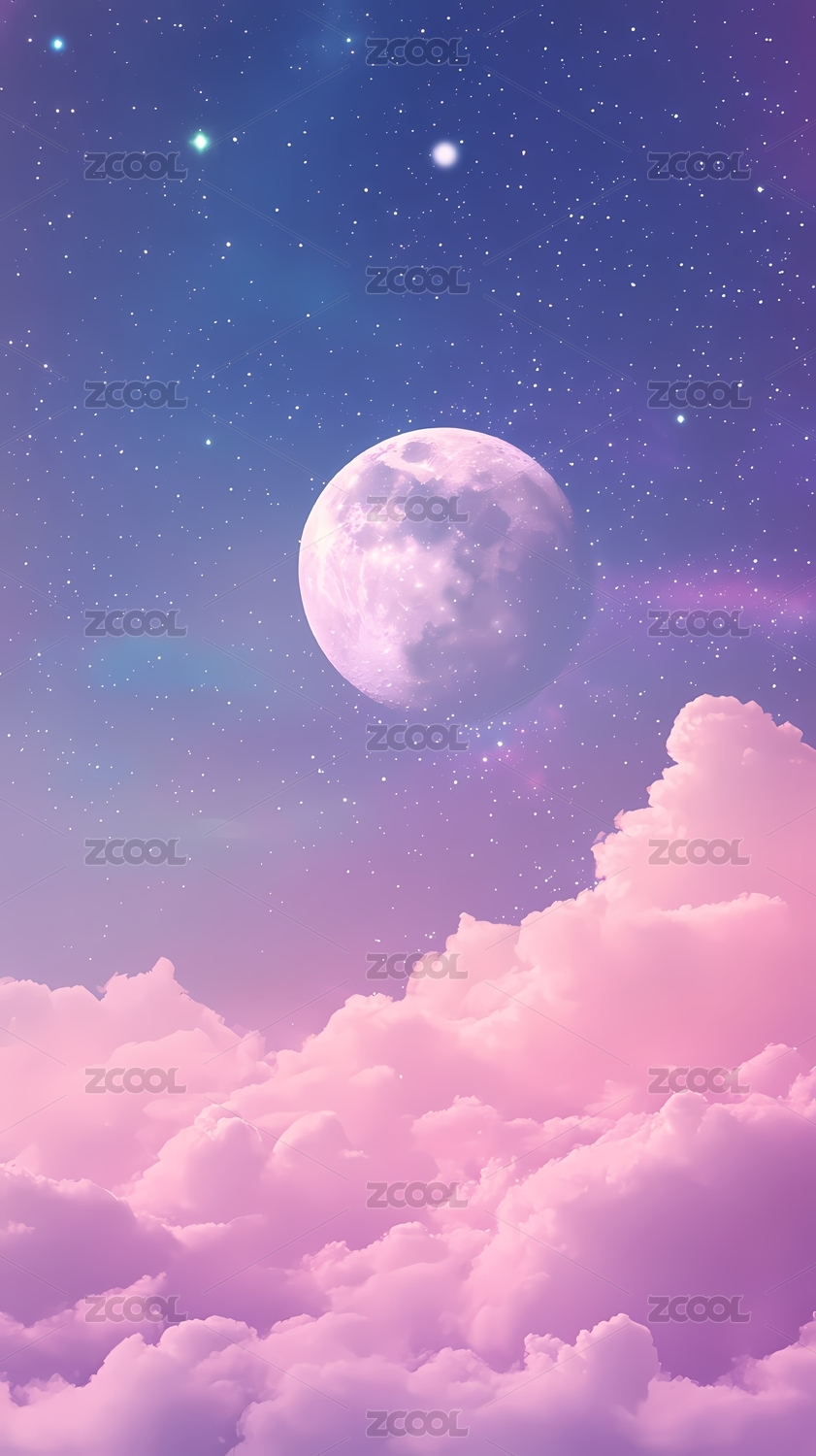 粉色,紫色,蓝色,太空,月亮,星星,云彩,天空,风景,几何