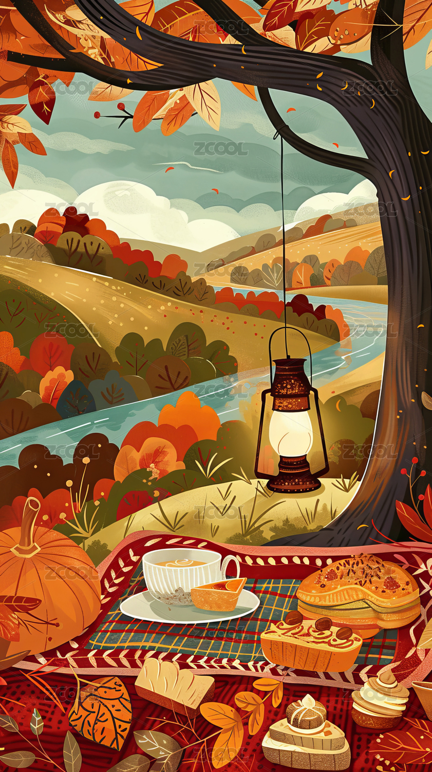 秋,秋天,秋季,金秋,插画,风景,背景,插图,秋分,手绘