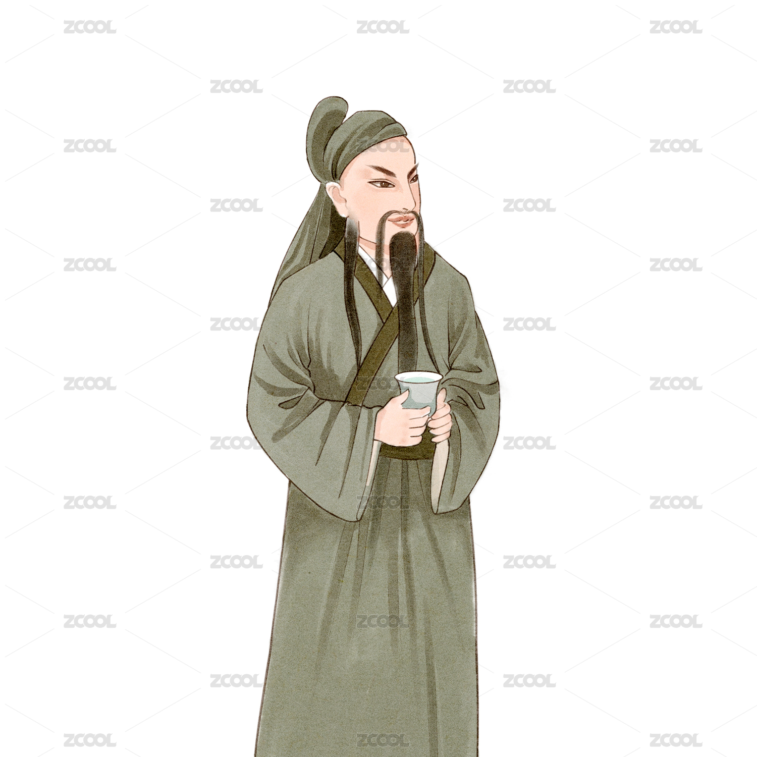 中国古代名医预防医学的介导者葛洪肖像漫画