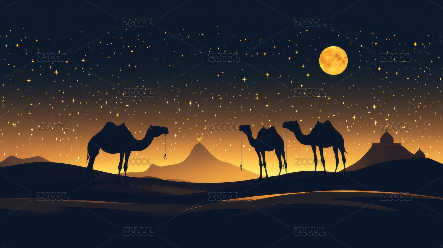 AIGC202404,插画,手绘,背景,沙漠,日落,沙丘,荒漠,简洁,干净