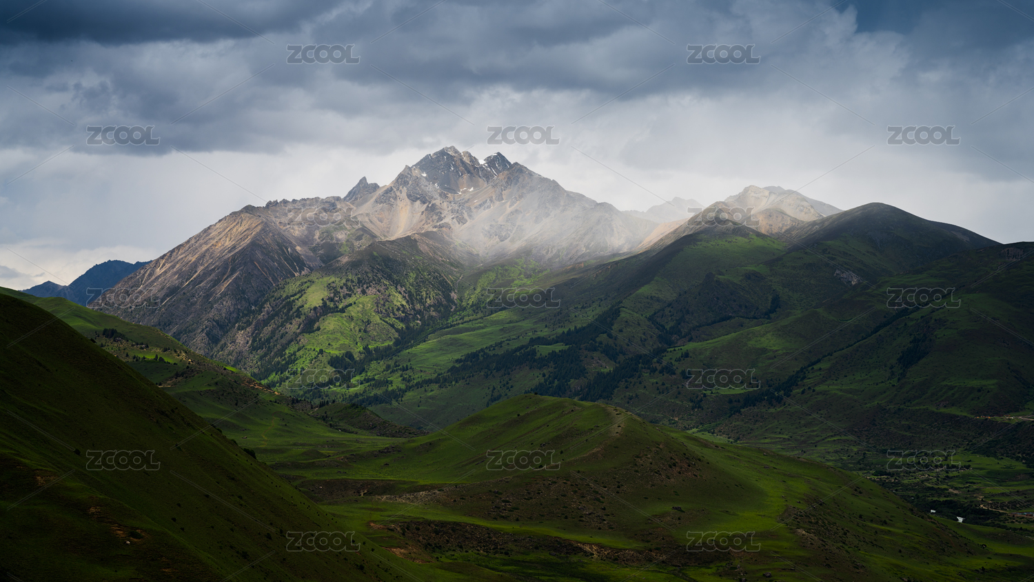 风光,草地,远山,高海拔,中国,山体,多云,西藏,当雄县,那曲市