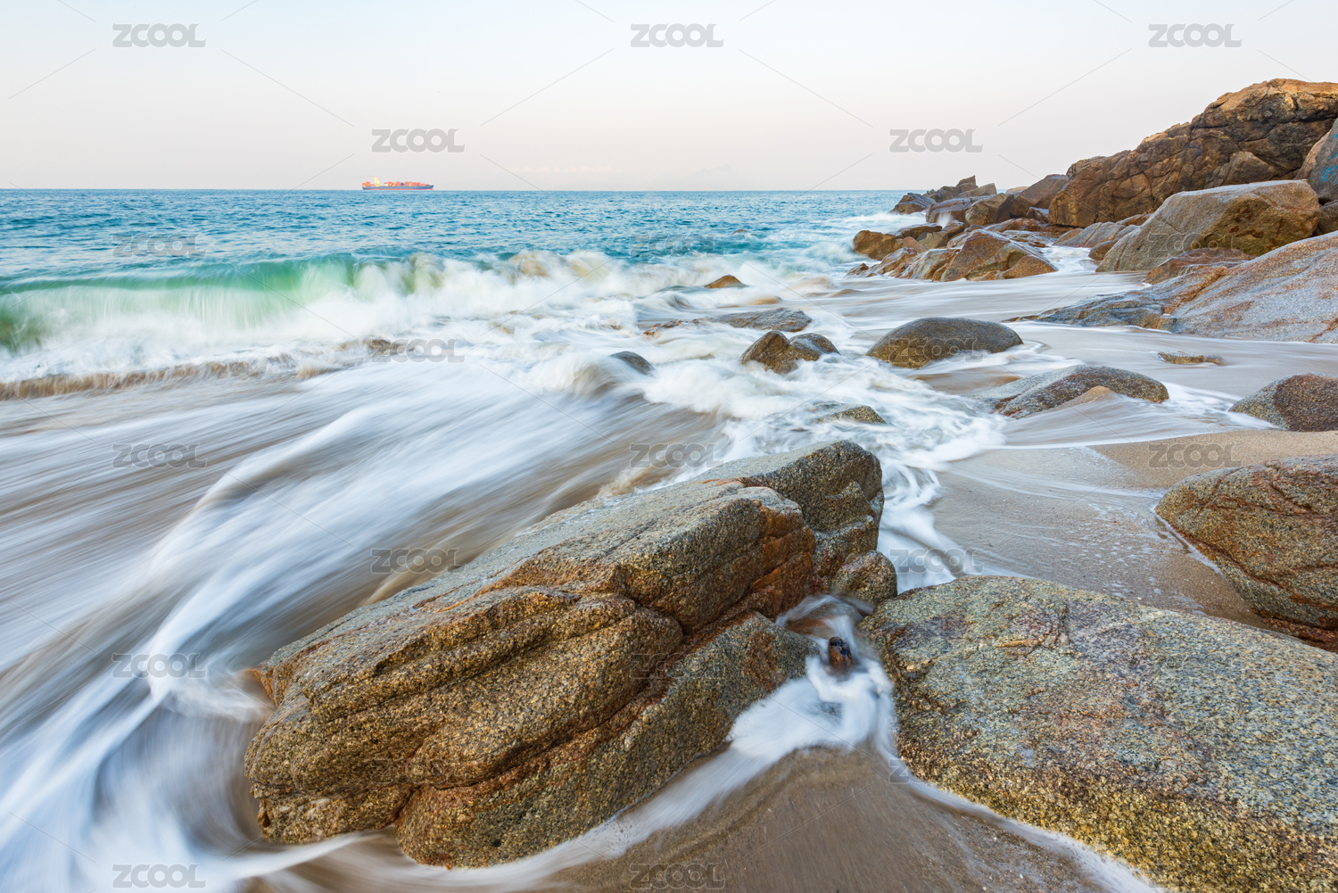 中国广东深圳大鹏半岛大鹿港海滩清晨的海浪