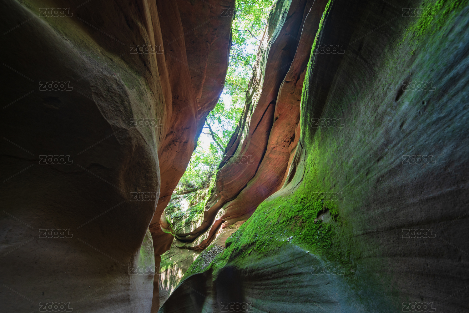 陕西,延安,甘泉县,雨岔大峡谷,峡谷,苔藓,生机,岩峰,曲线,光线