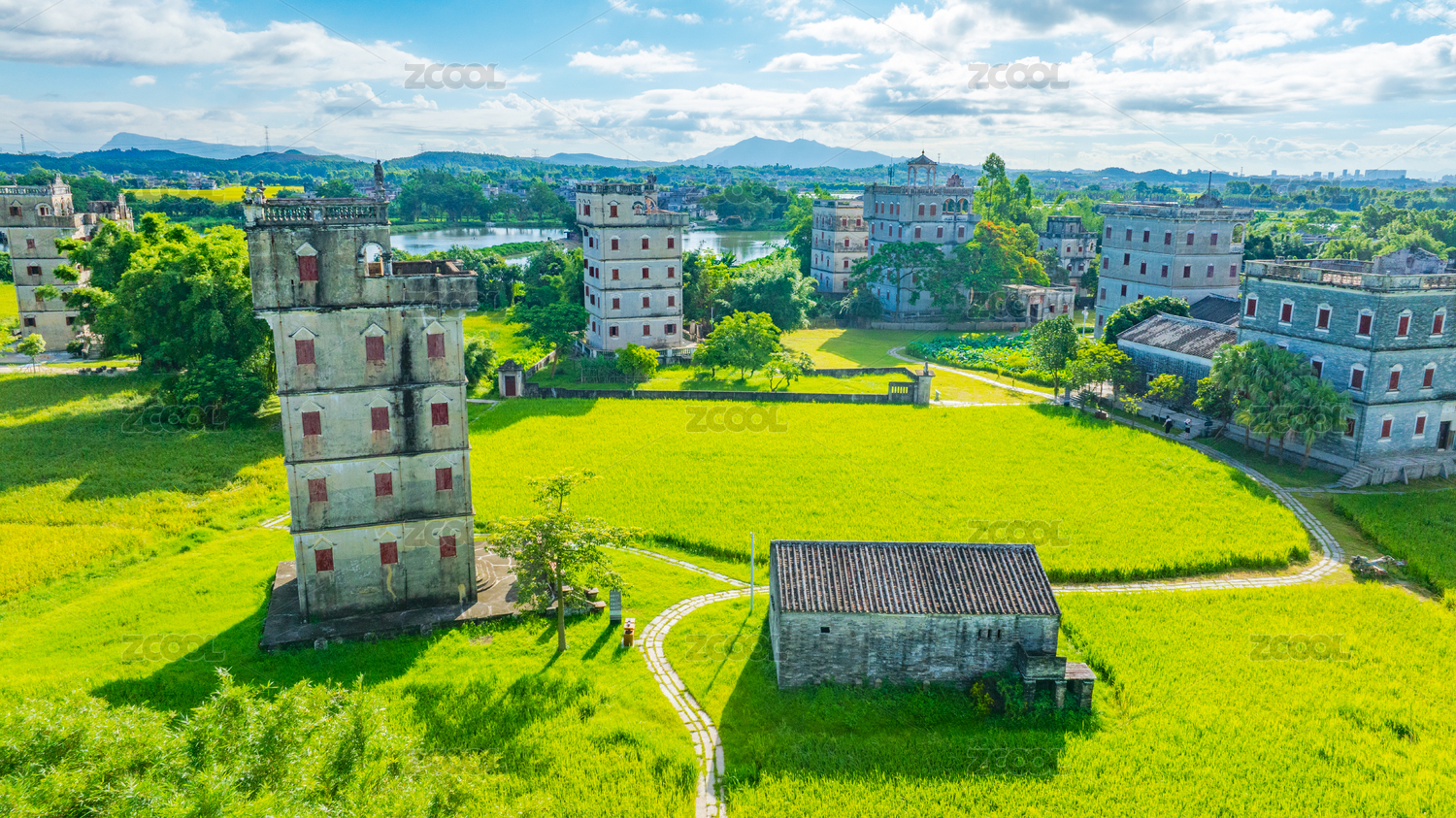 蓝天,晴天,天际线,树,绿色,阳光,侨乡,近现代,村落,乡村