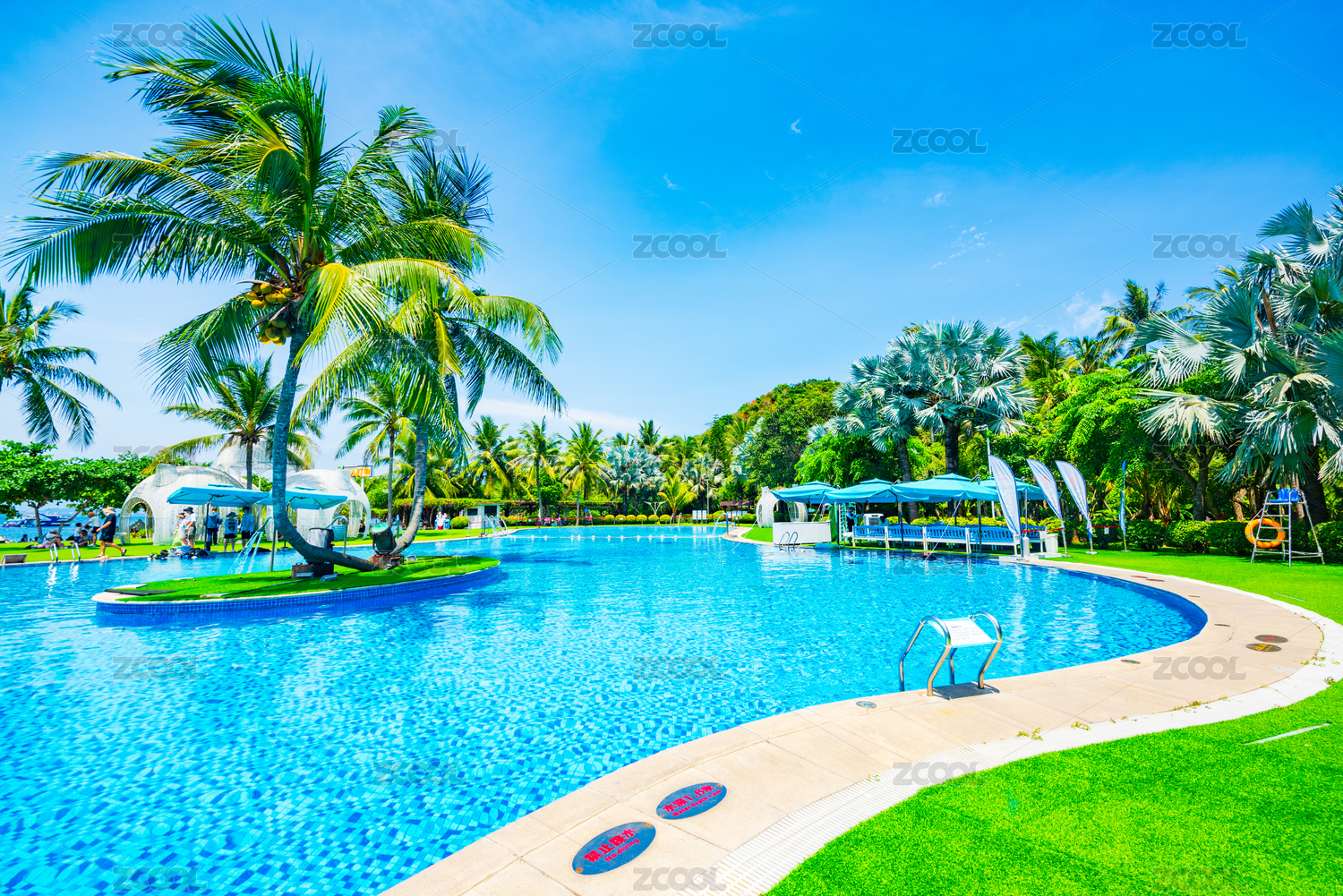 海南,三亚,蜈支洲岛,椰树,泳池,靛蓝,蓝色,晴天,度假胜地,游泳池