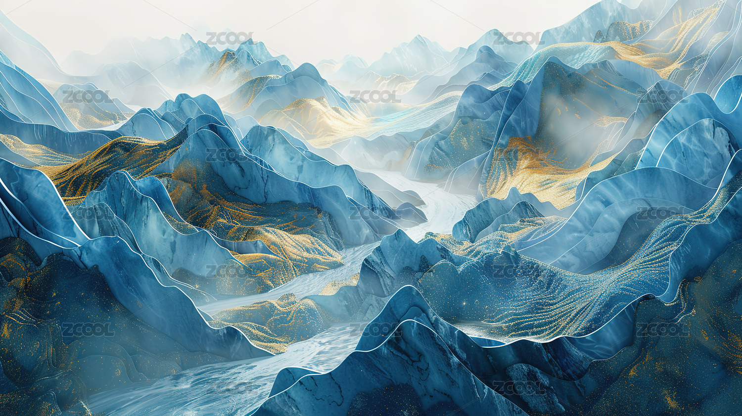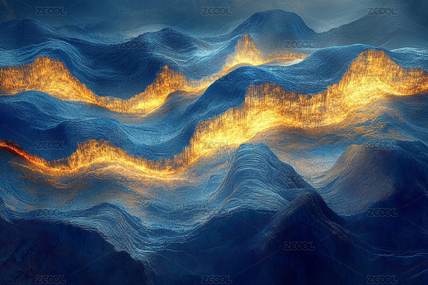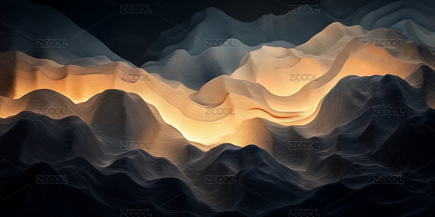 山峦叠嶂金线点缀的梦幻图景