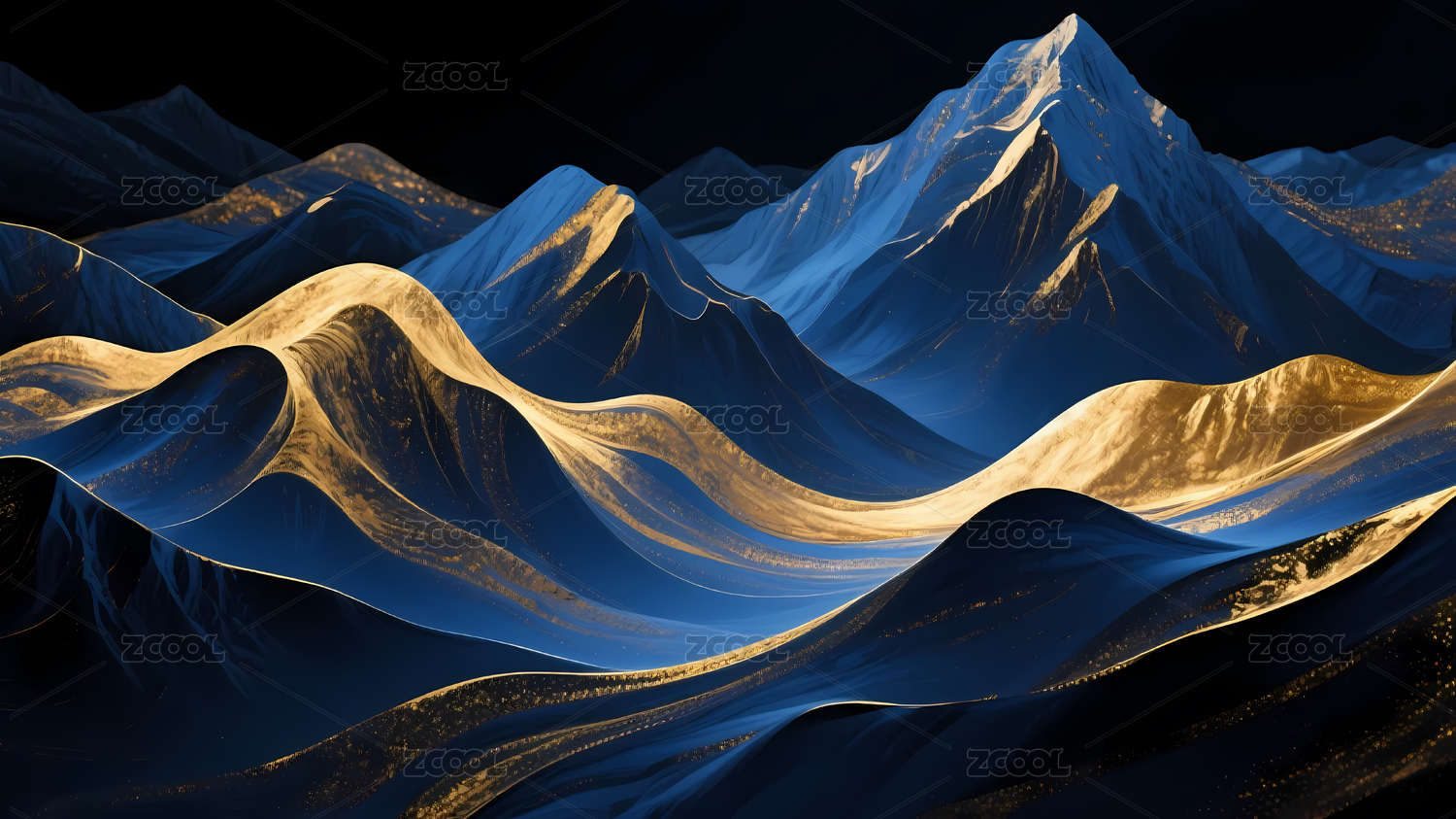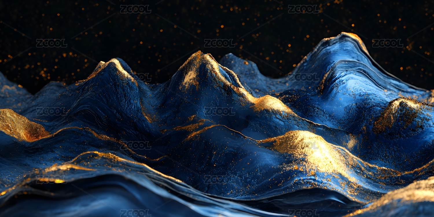 蓝金山峦梦幻黑色背景