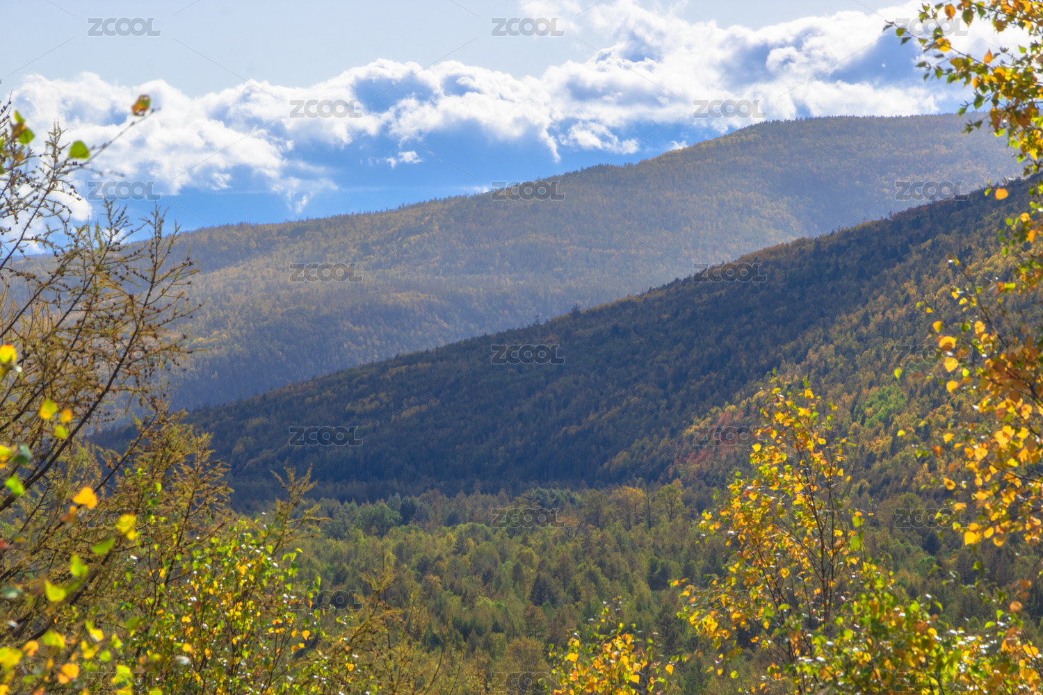秋天山林里满山的红叶、黄叶