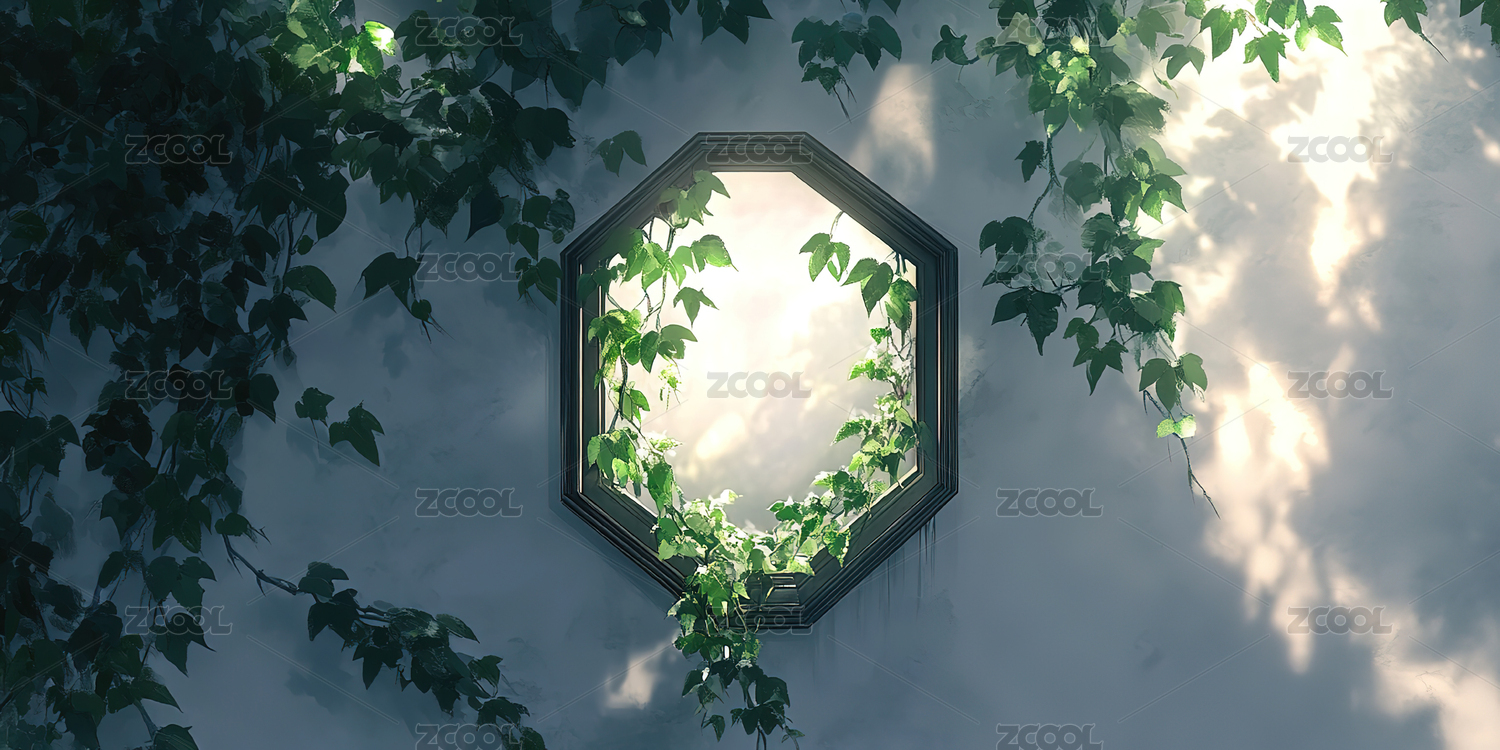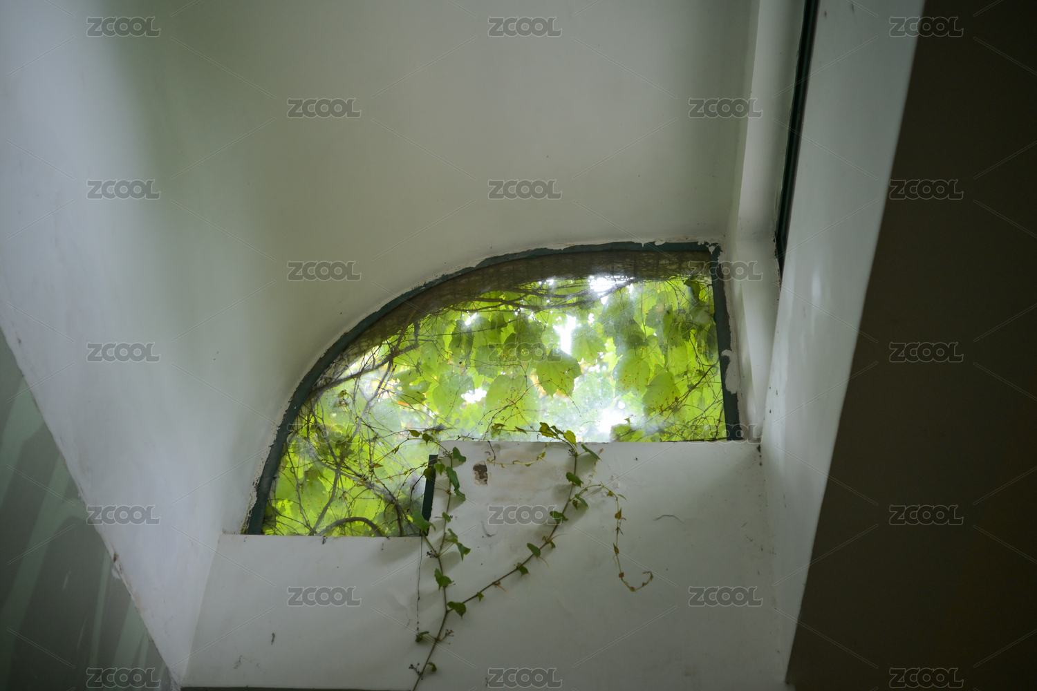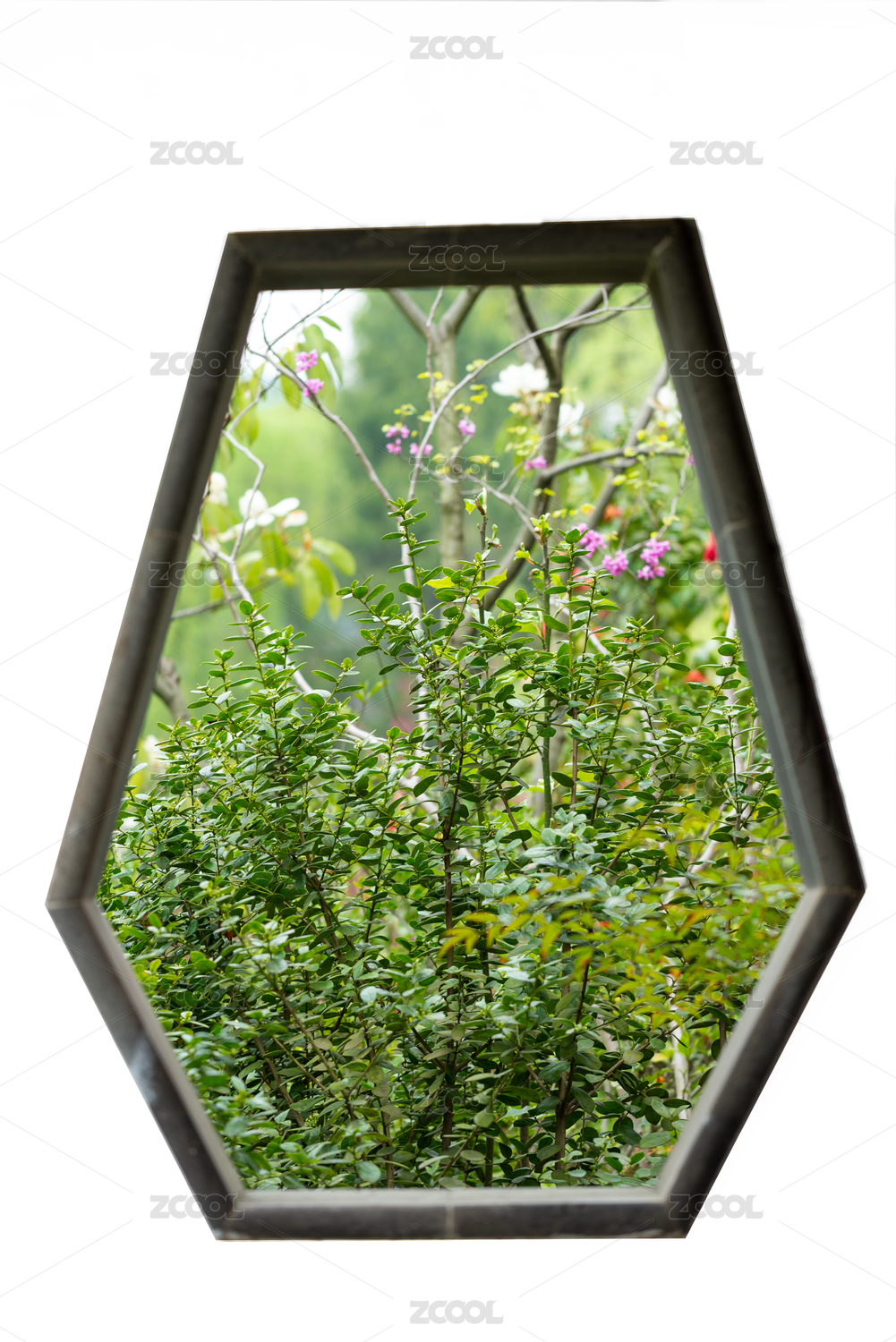 中国浙江杭州郭庄方形窗外的中式建筑景观