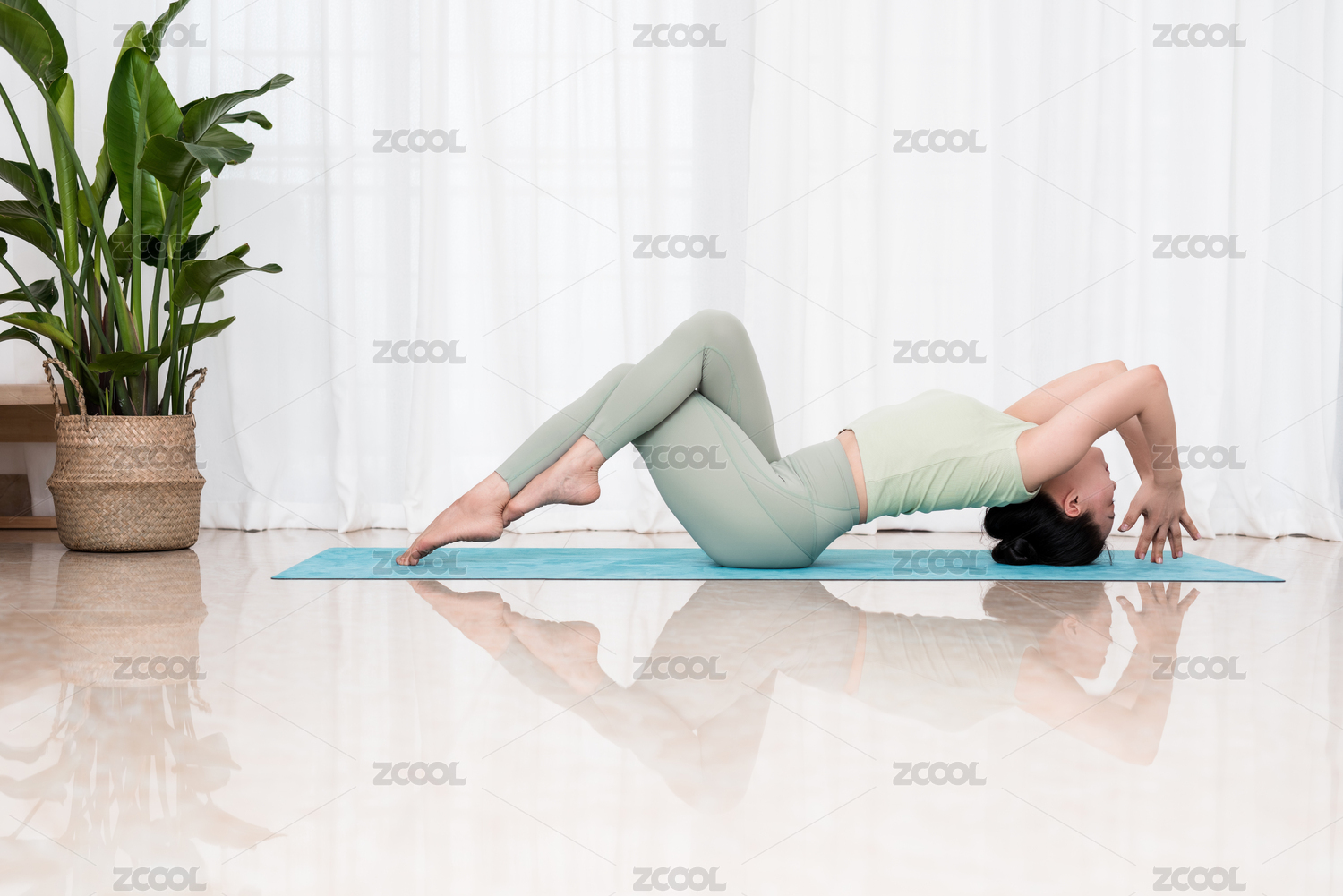 室内居家光亮环境正在练习瑜伽的亚洲女性