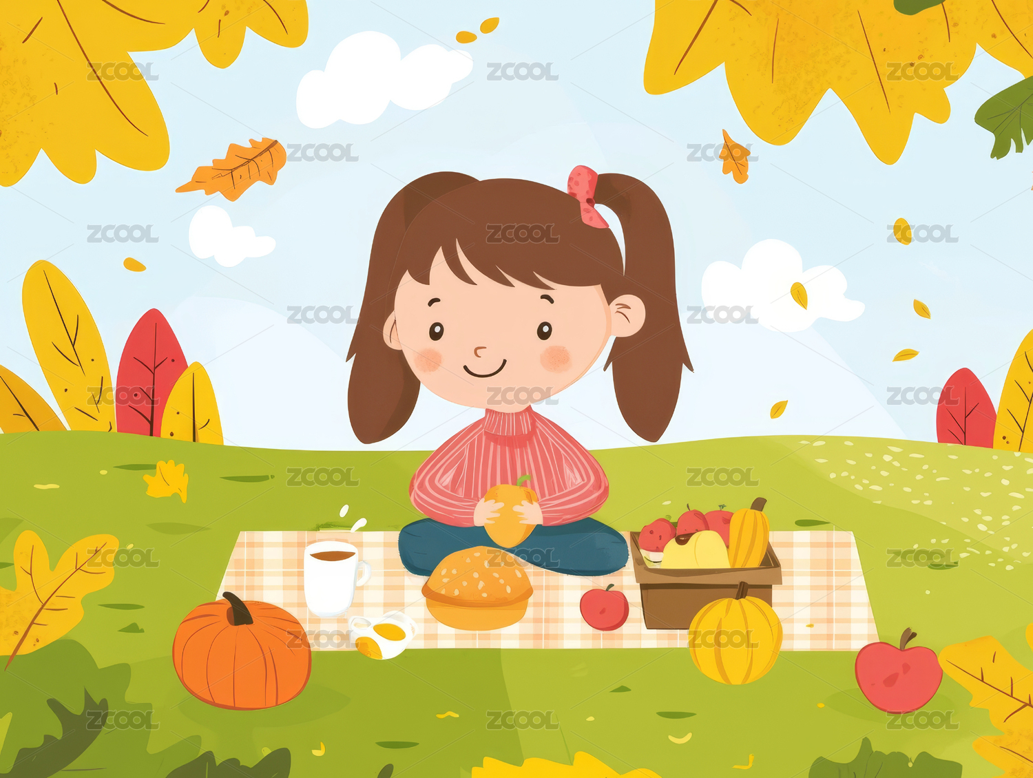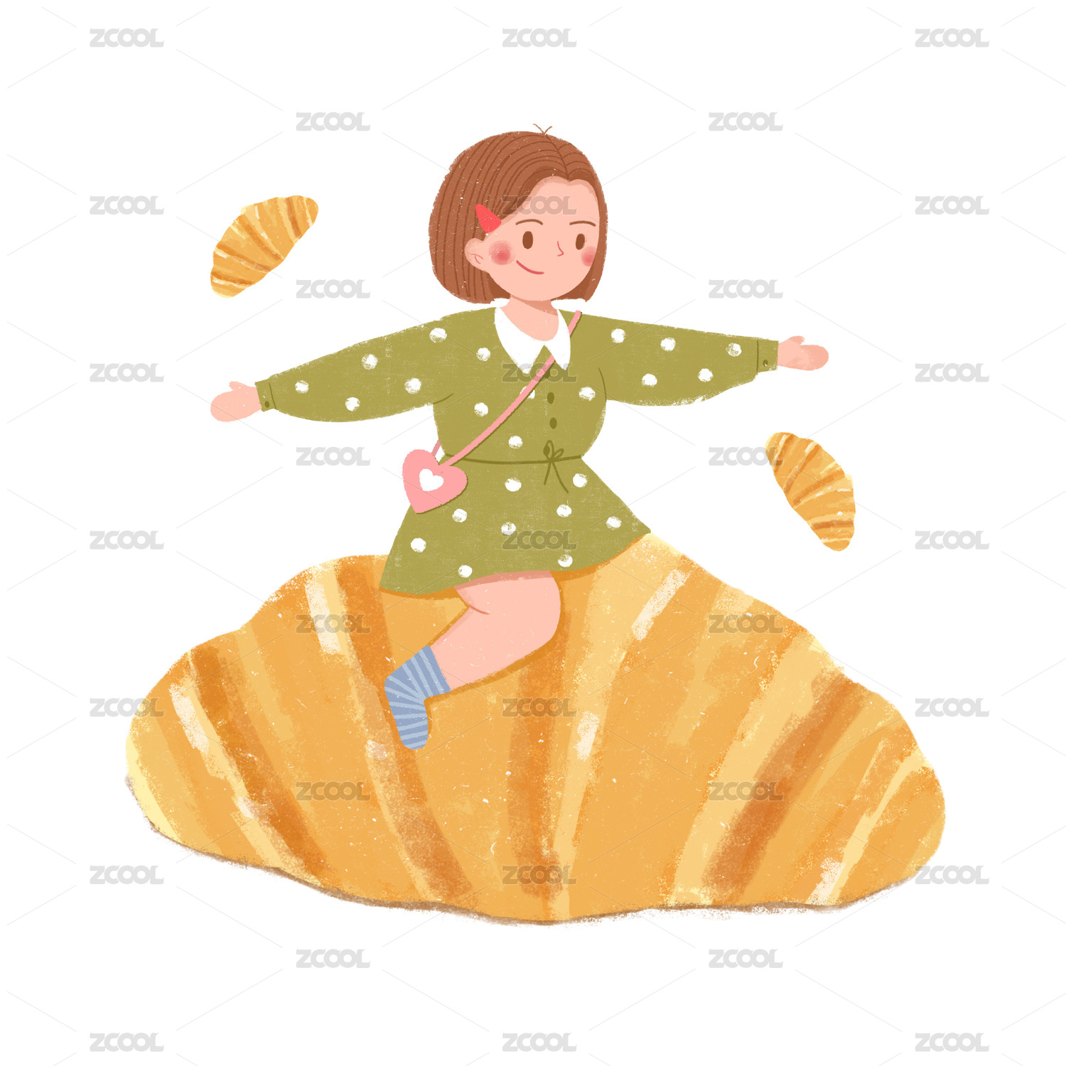 面包,可颂,麦穗,卡通女孩,鸡蛋,蓝莓,美食,甜品