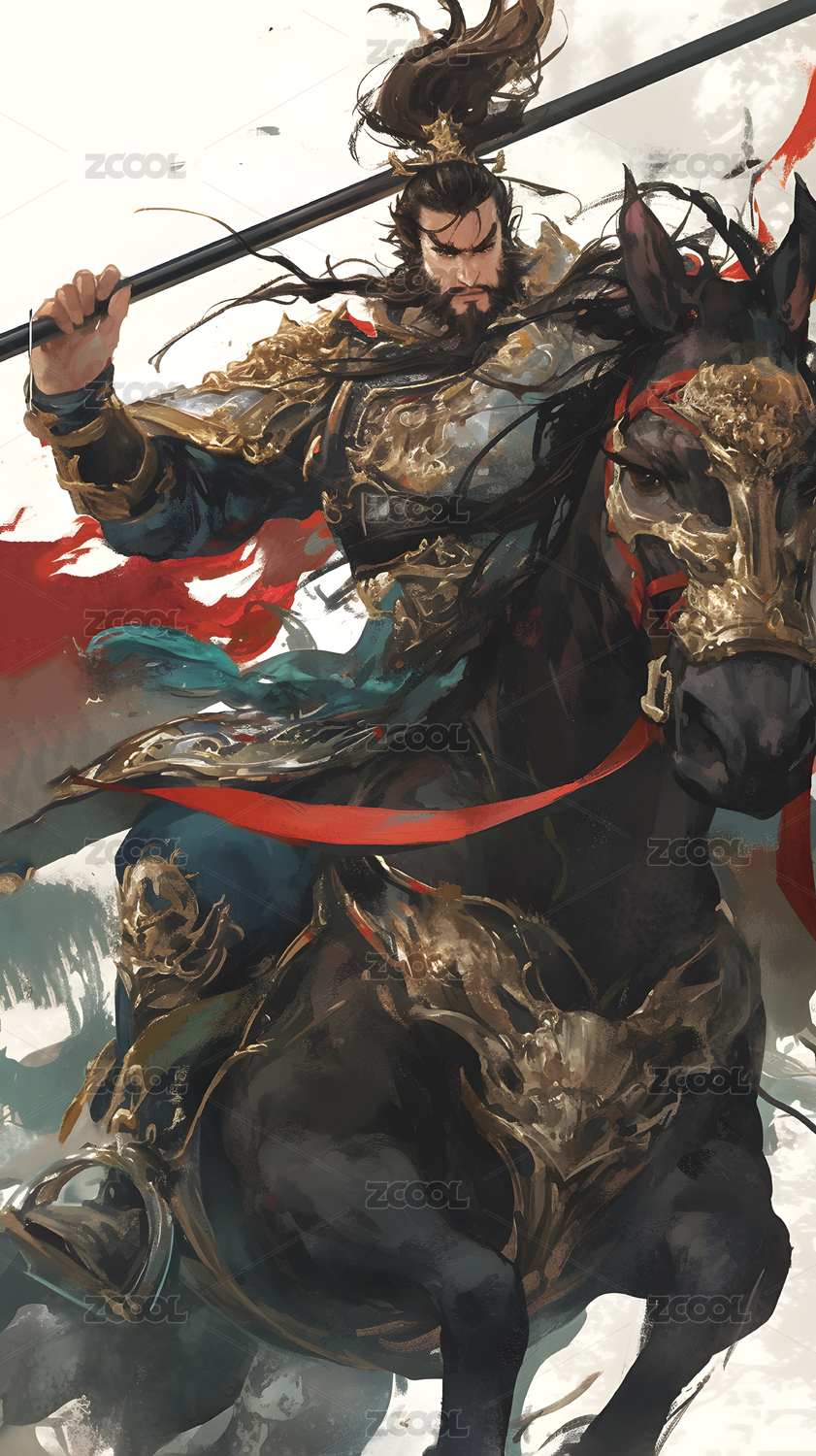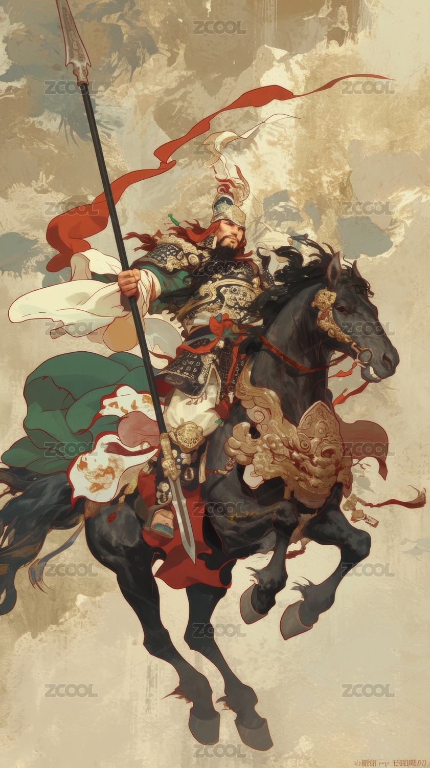 中国风,国潮风,将军,人,男人,帅哥,战胜,战马,马,插画