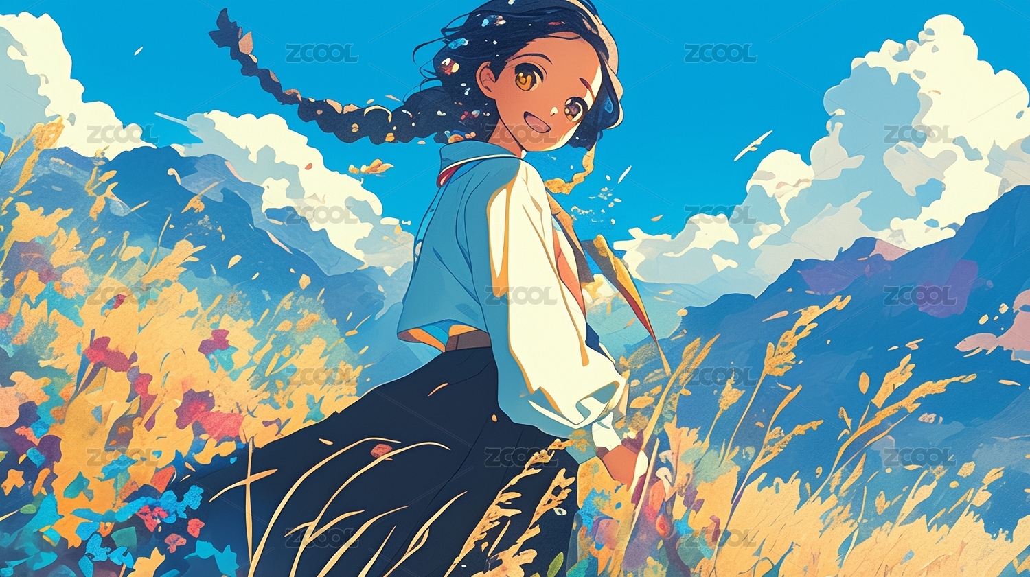 草原上的男孩新海诚动漫风格插画