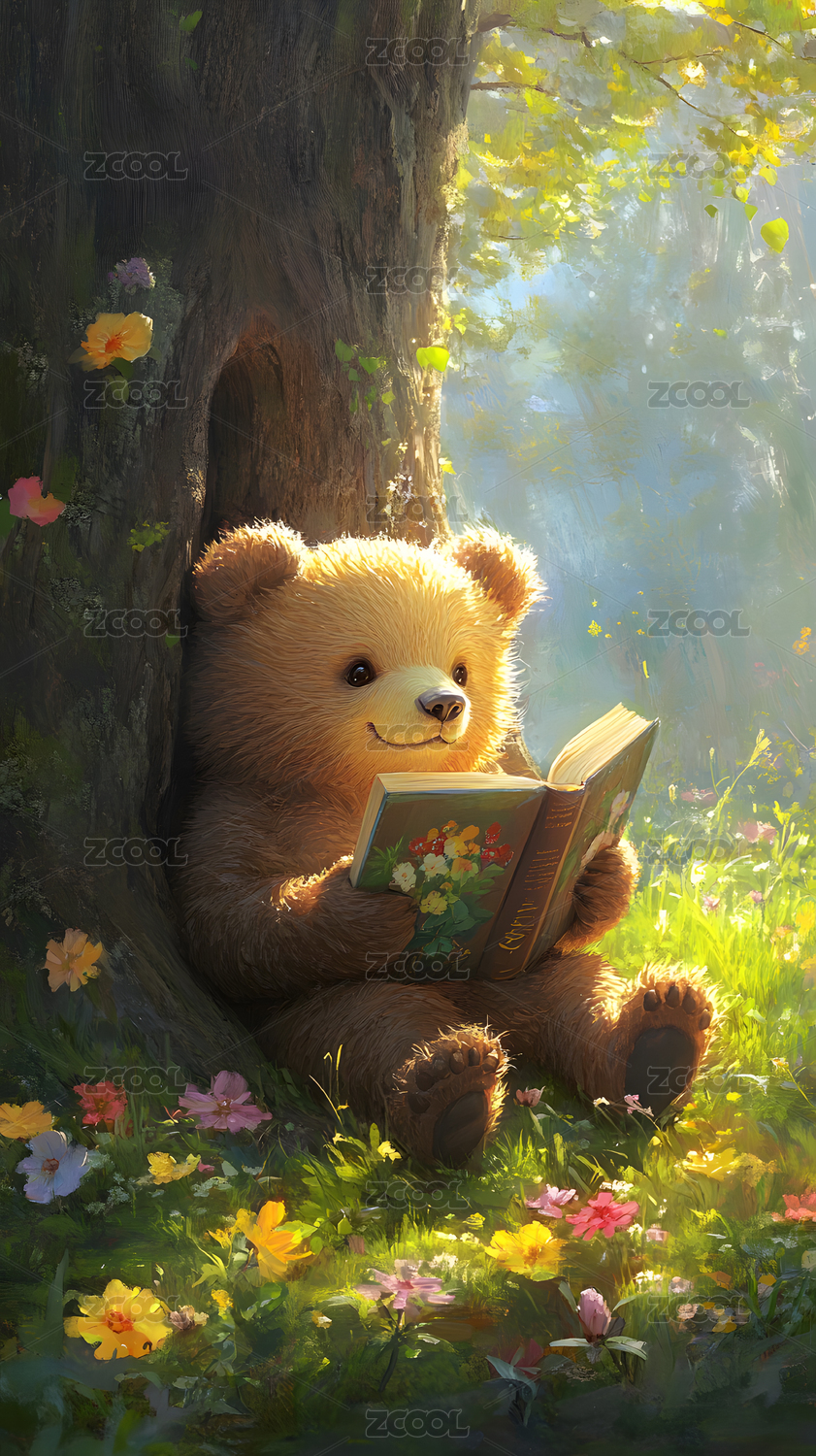 在树下看书的小熊