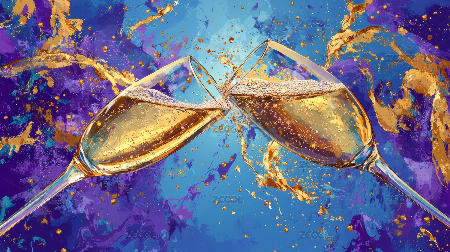 香槟碰杯庆祝喜悦瞬间气泡飞溅