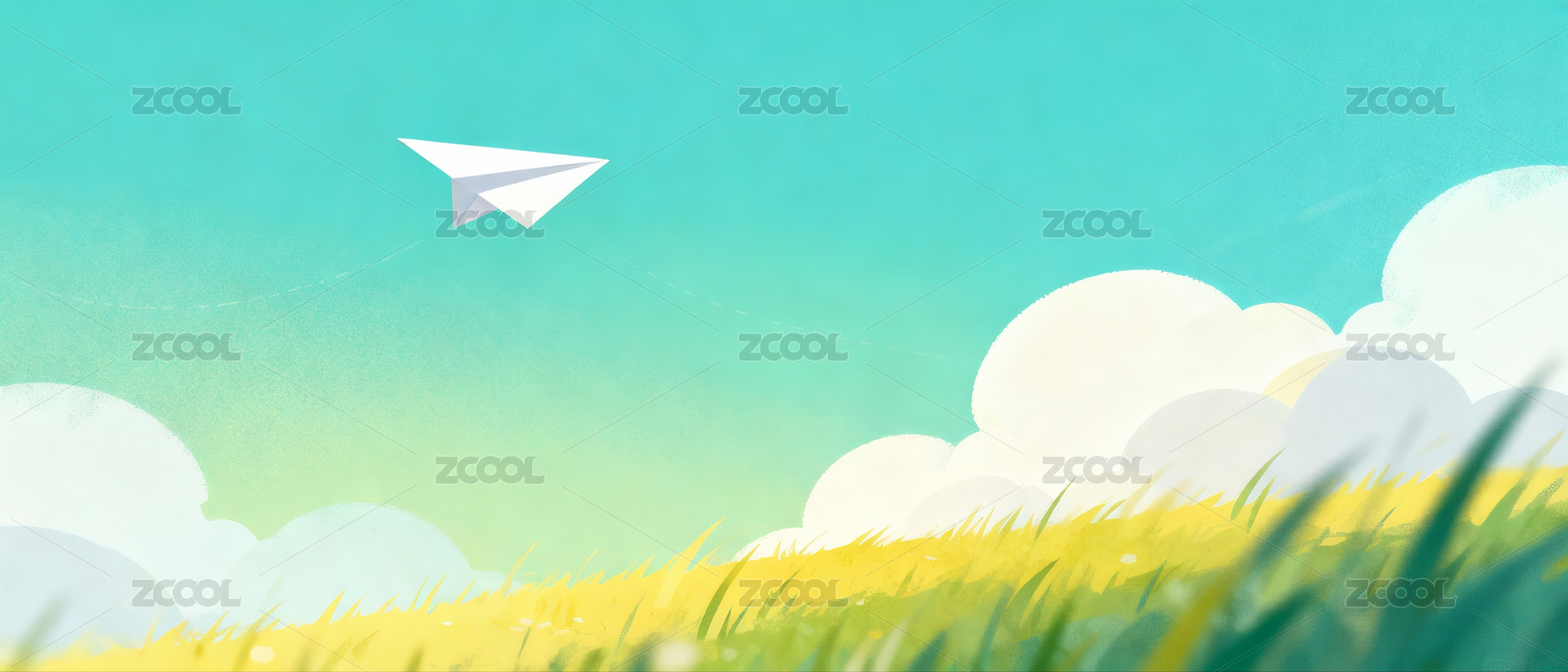 蓝天白云中体现青春、梦想、与引领的一群纸飞机