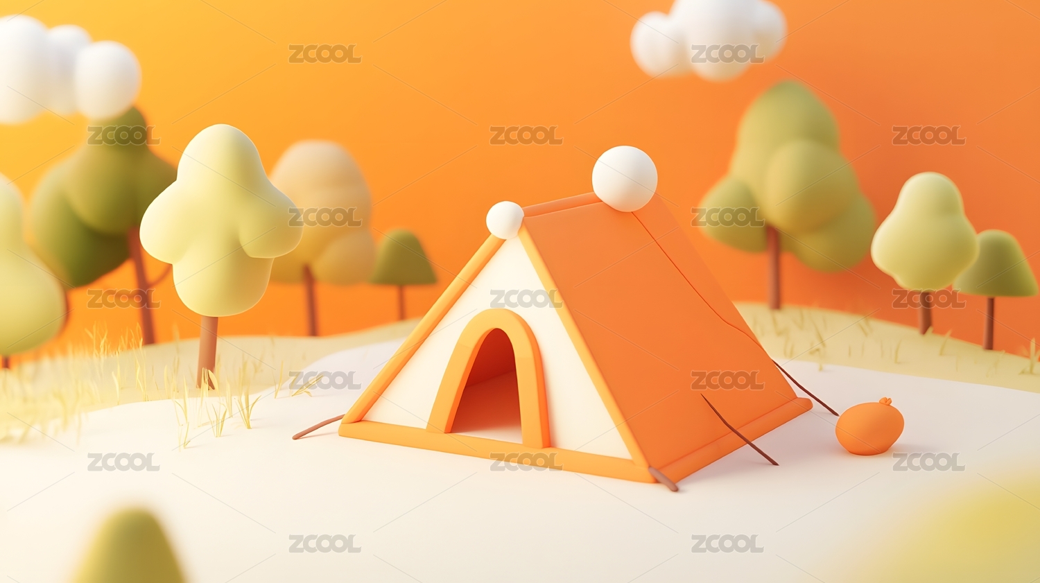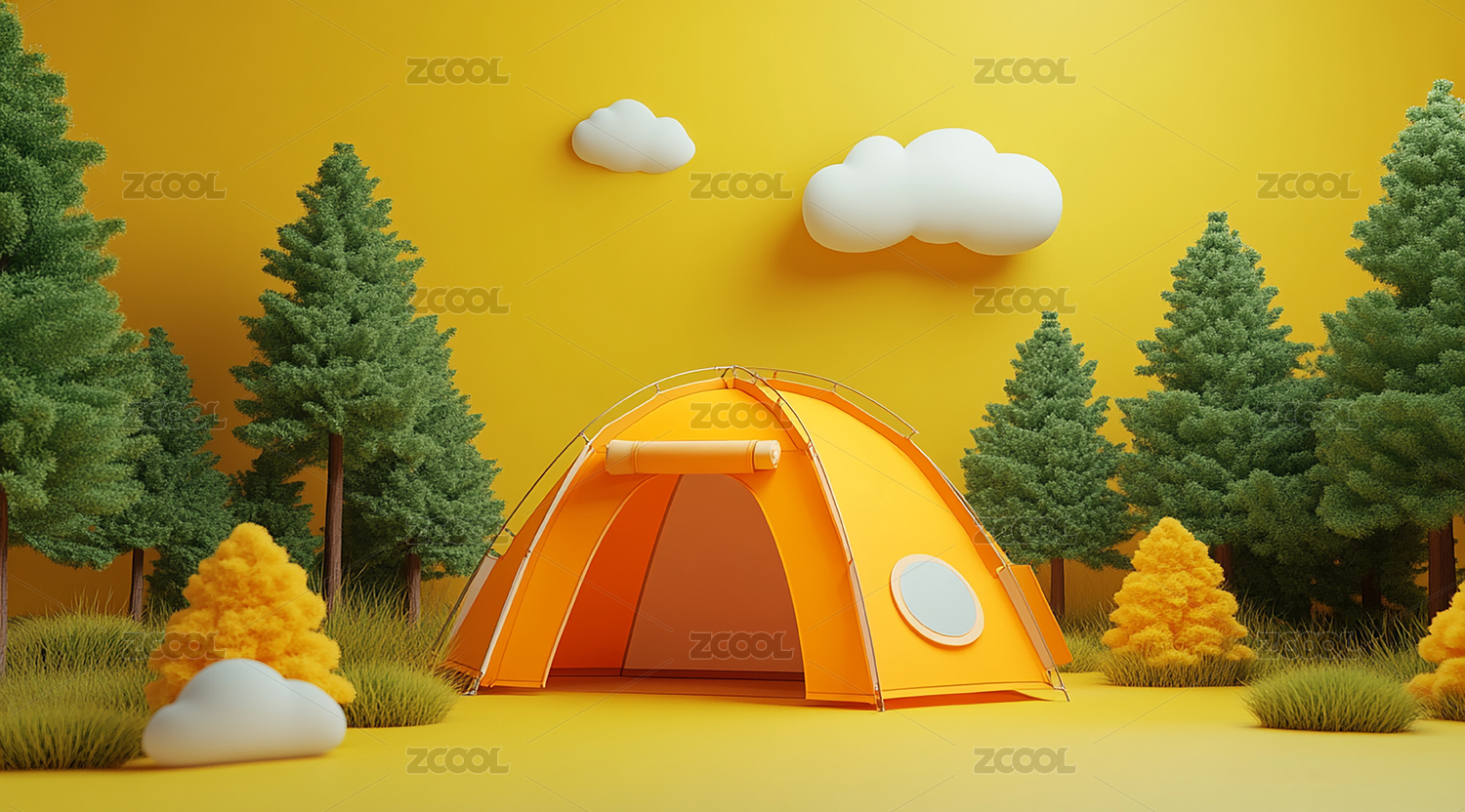 卡通户外露营帐篷场景