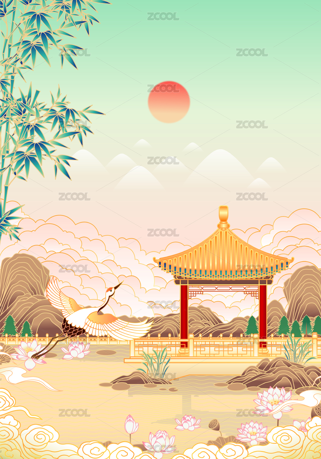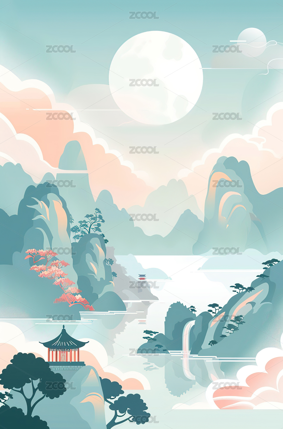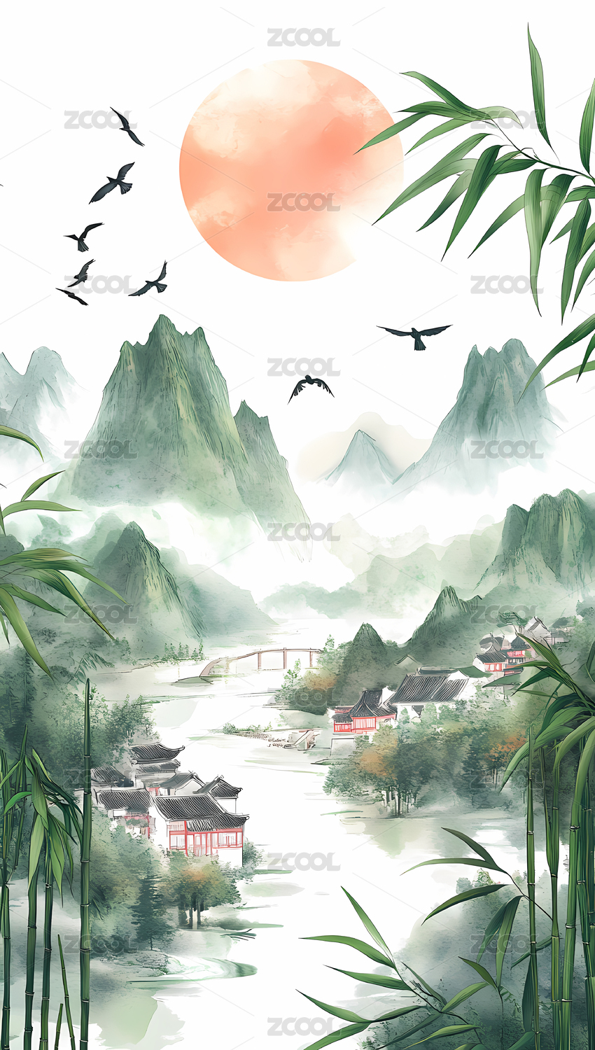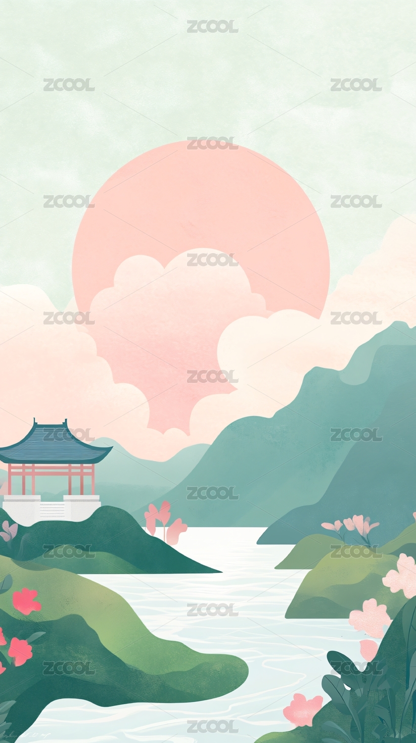 中国风山水背景插画