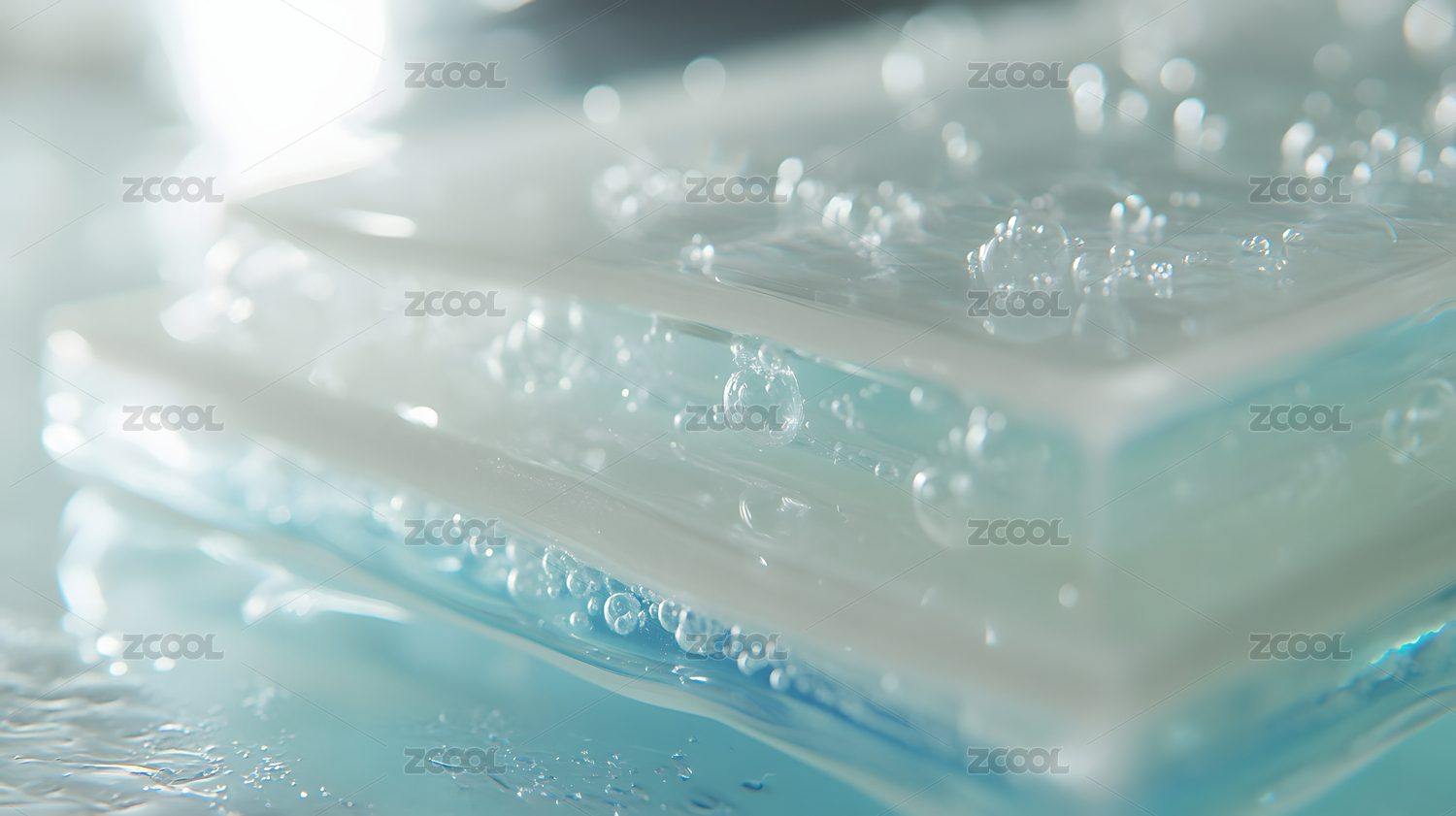 晶莹剔透玻璃块水滴质感特写高清图片