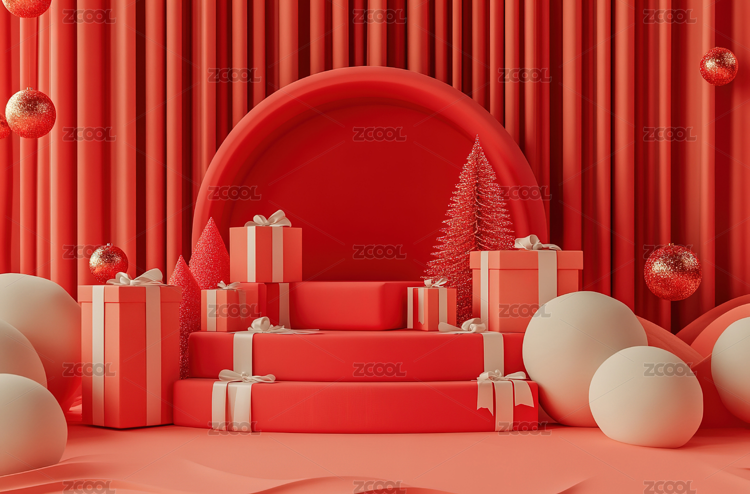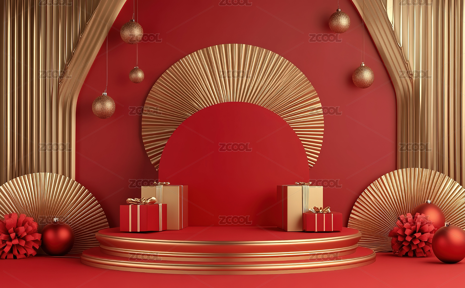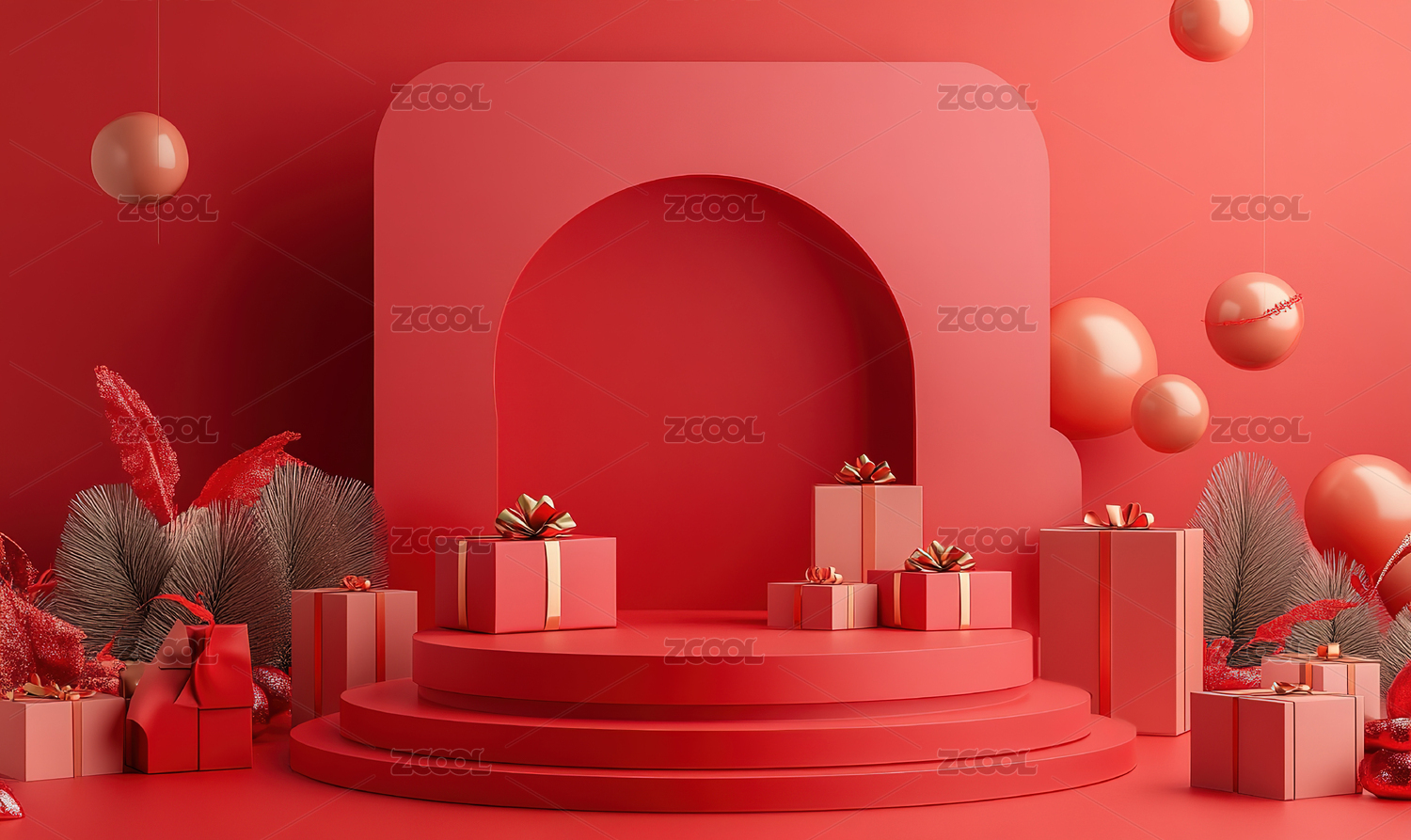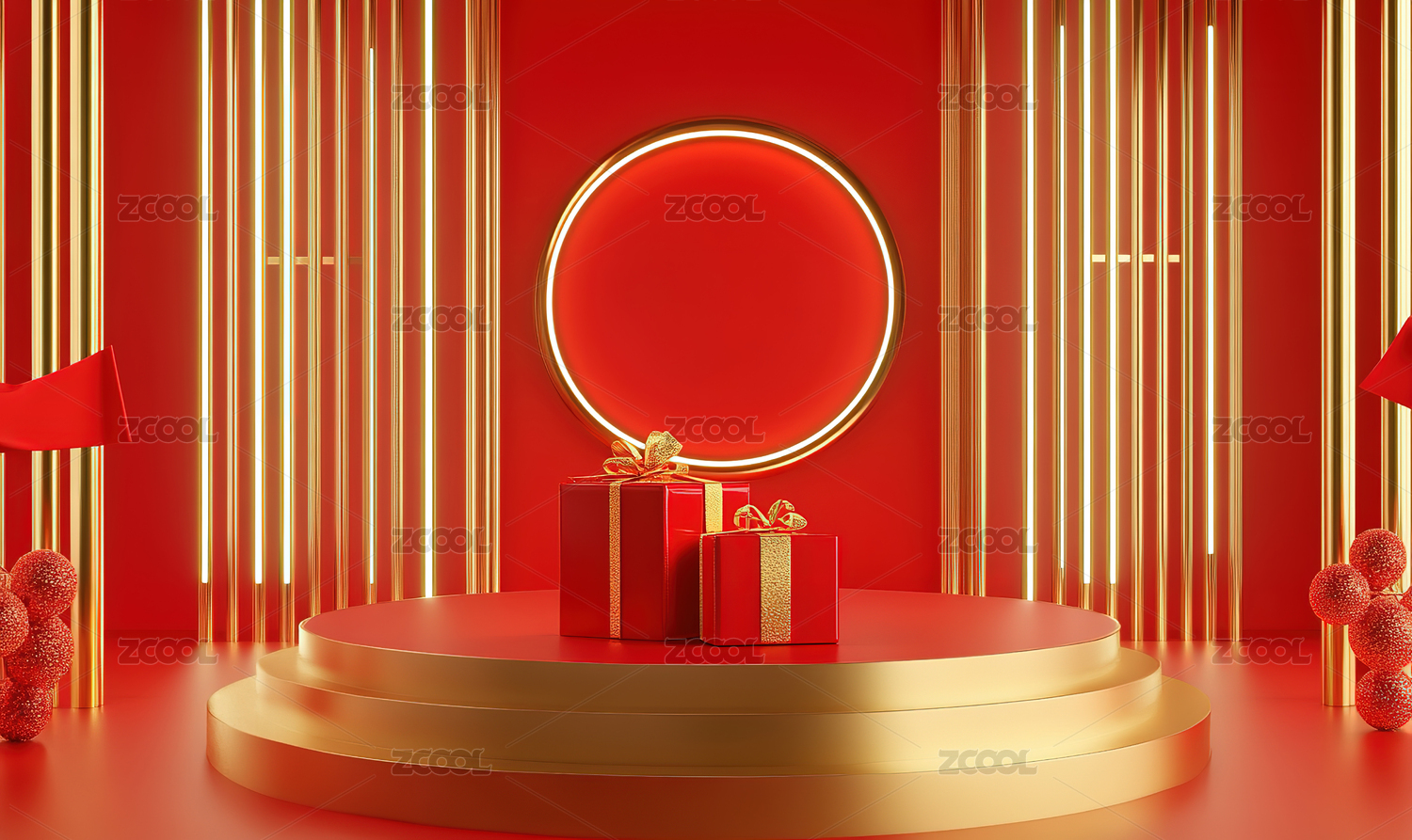 3D中式红色电商展台背景