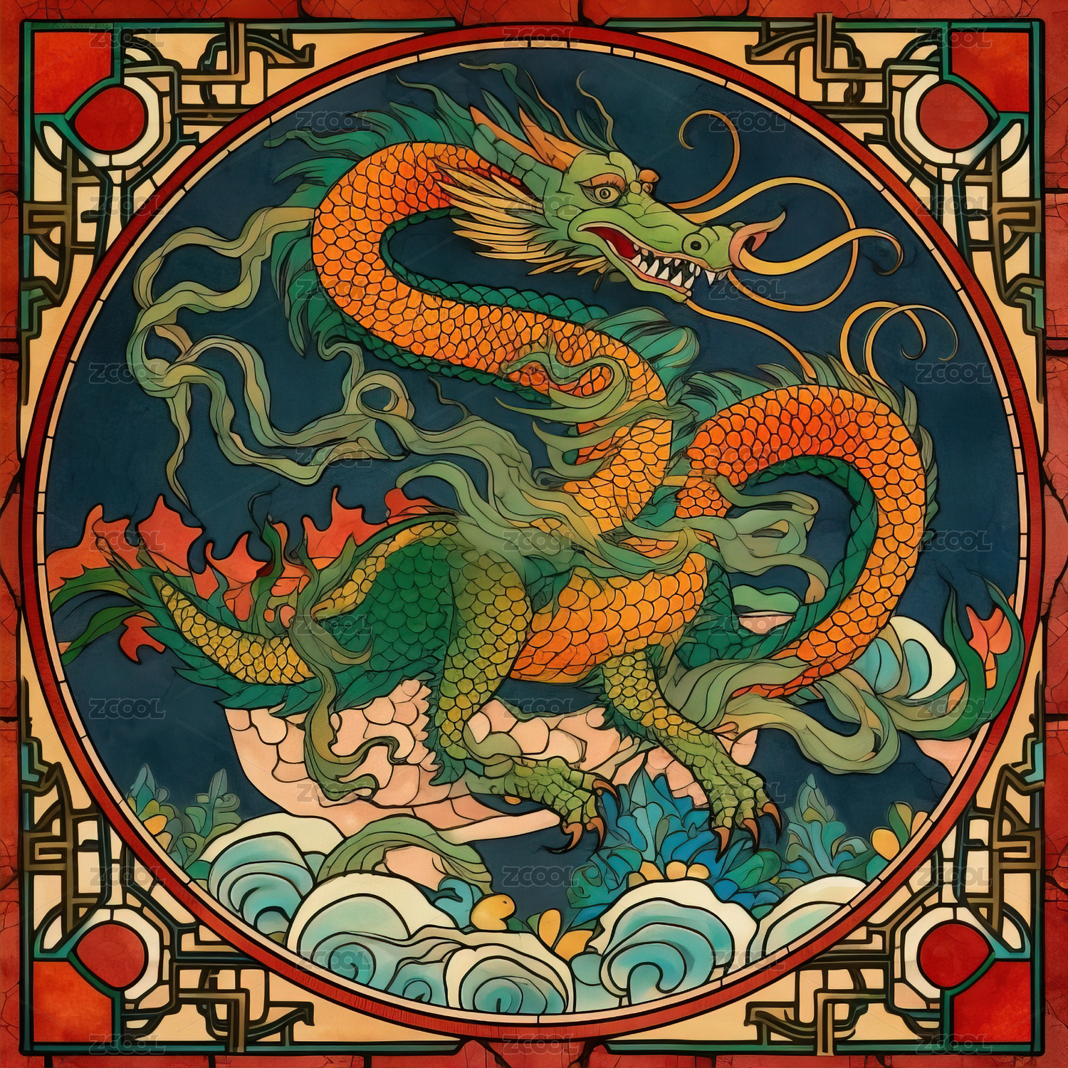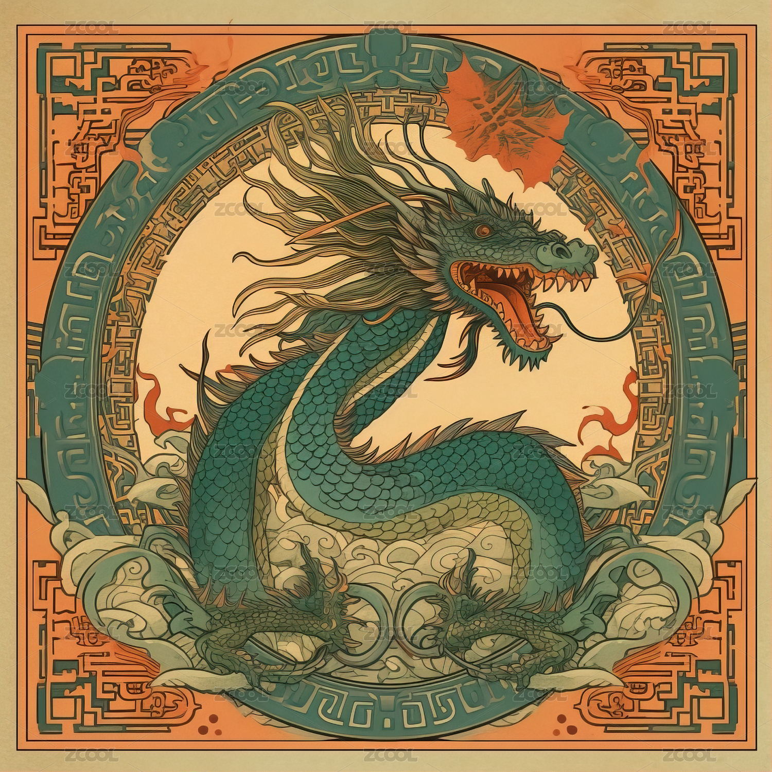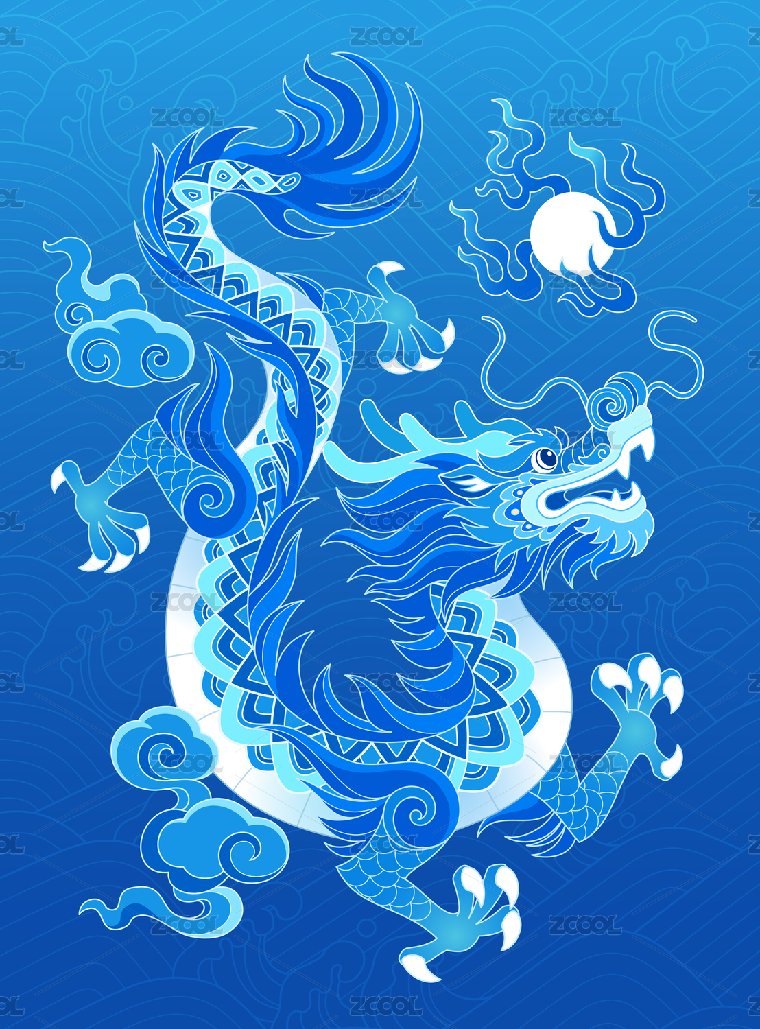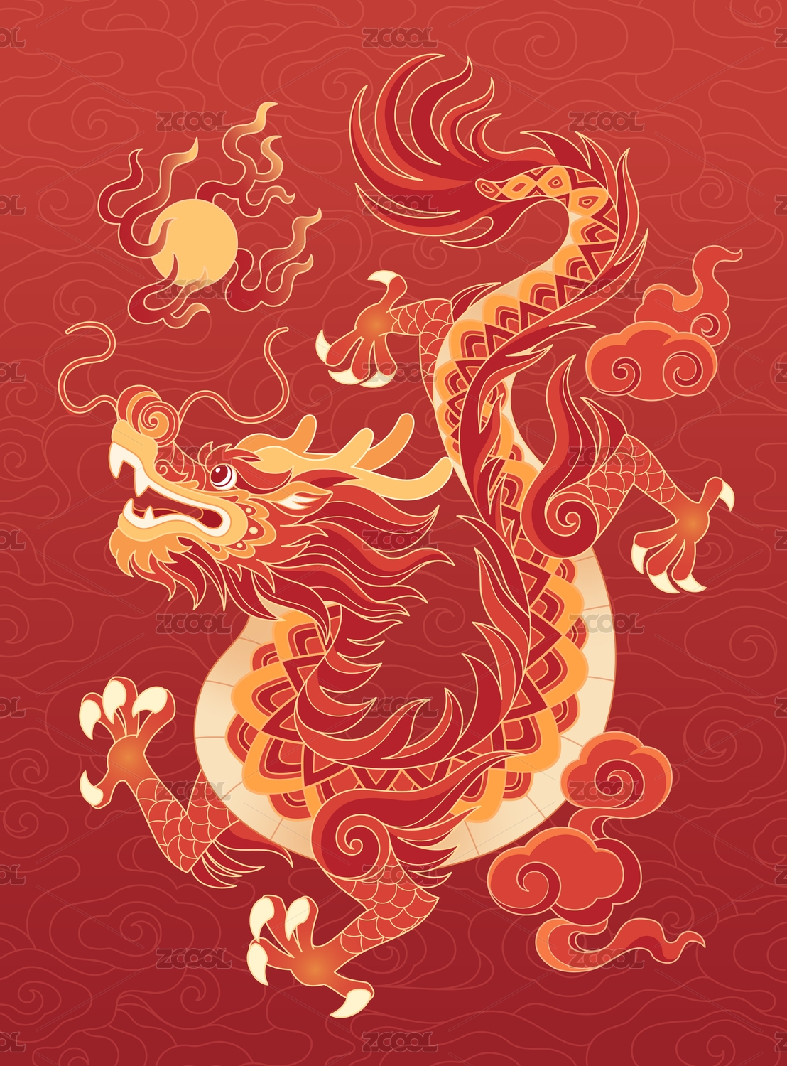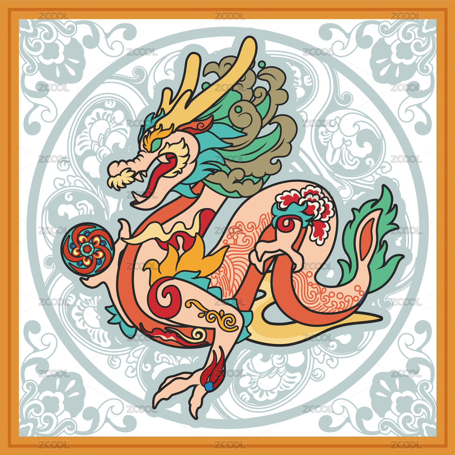 中式纹样中国龙纹饰吉祥图案龙年图腾