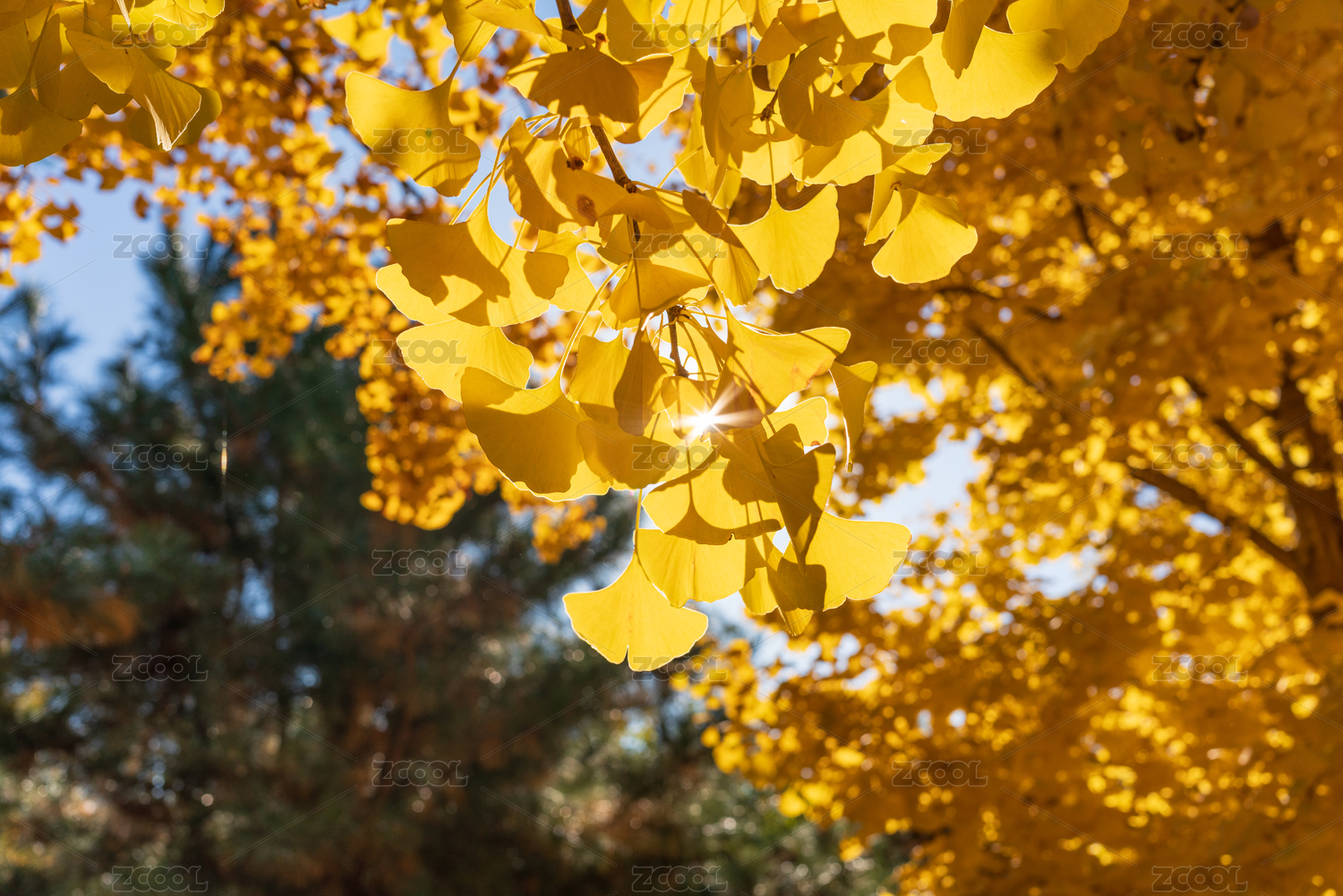 冬日枝头上一片片已经黄透金黄的银杏叶