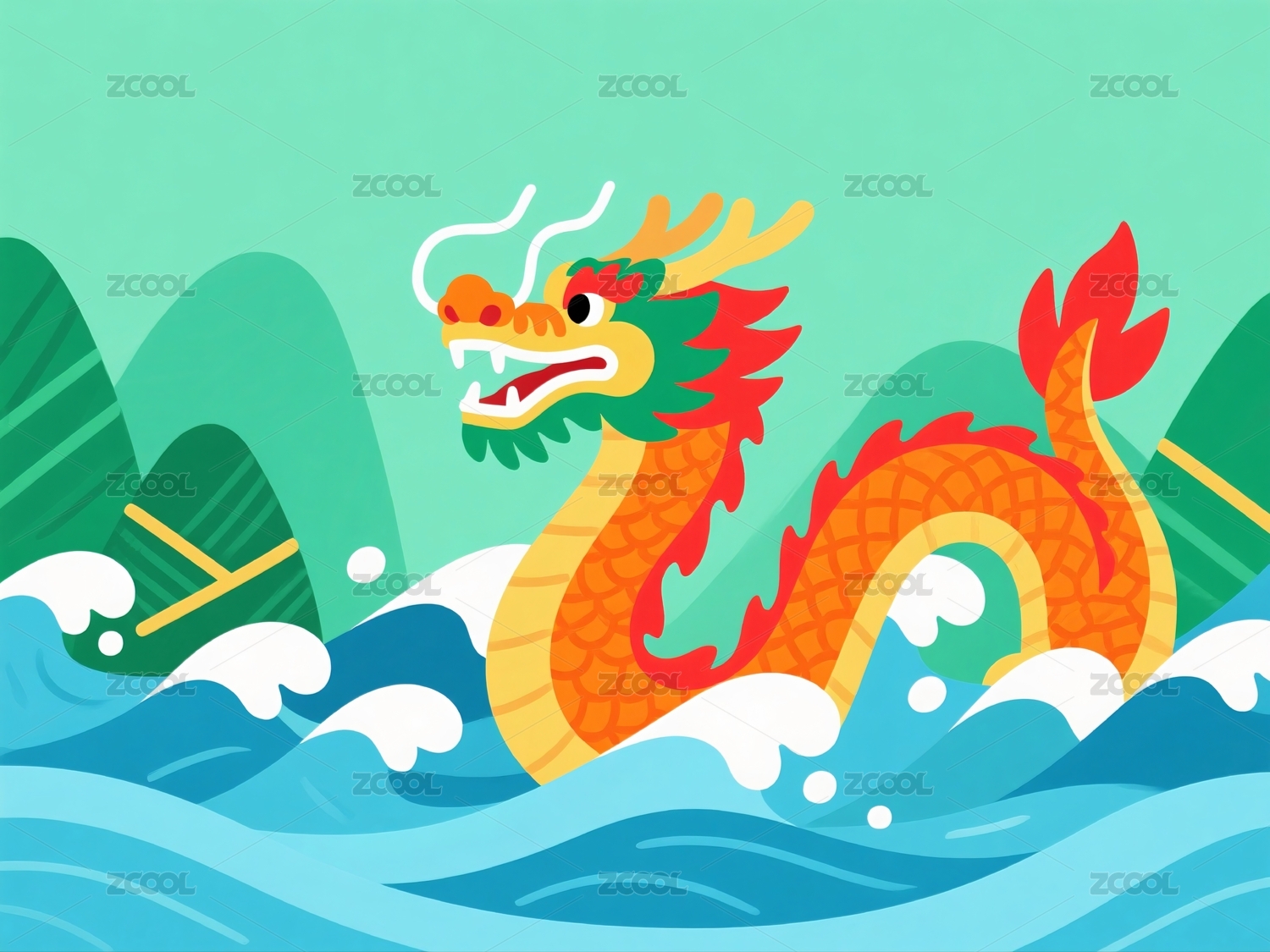 端午节中国龙传统节日习俗古风神龙国潮插画