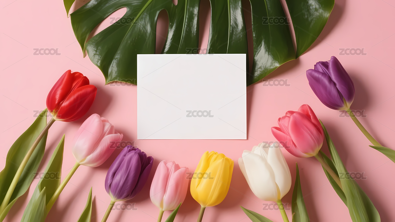 郁金香礼品盒顶视图情人节感恩节概念插图