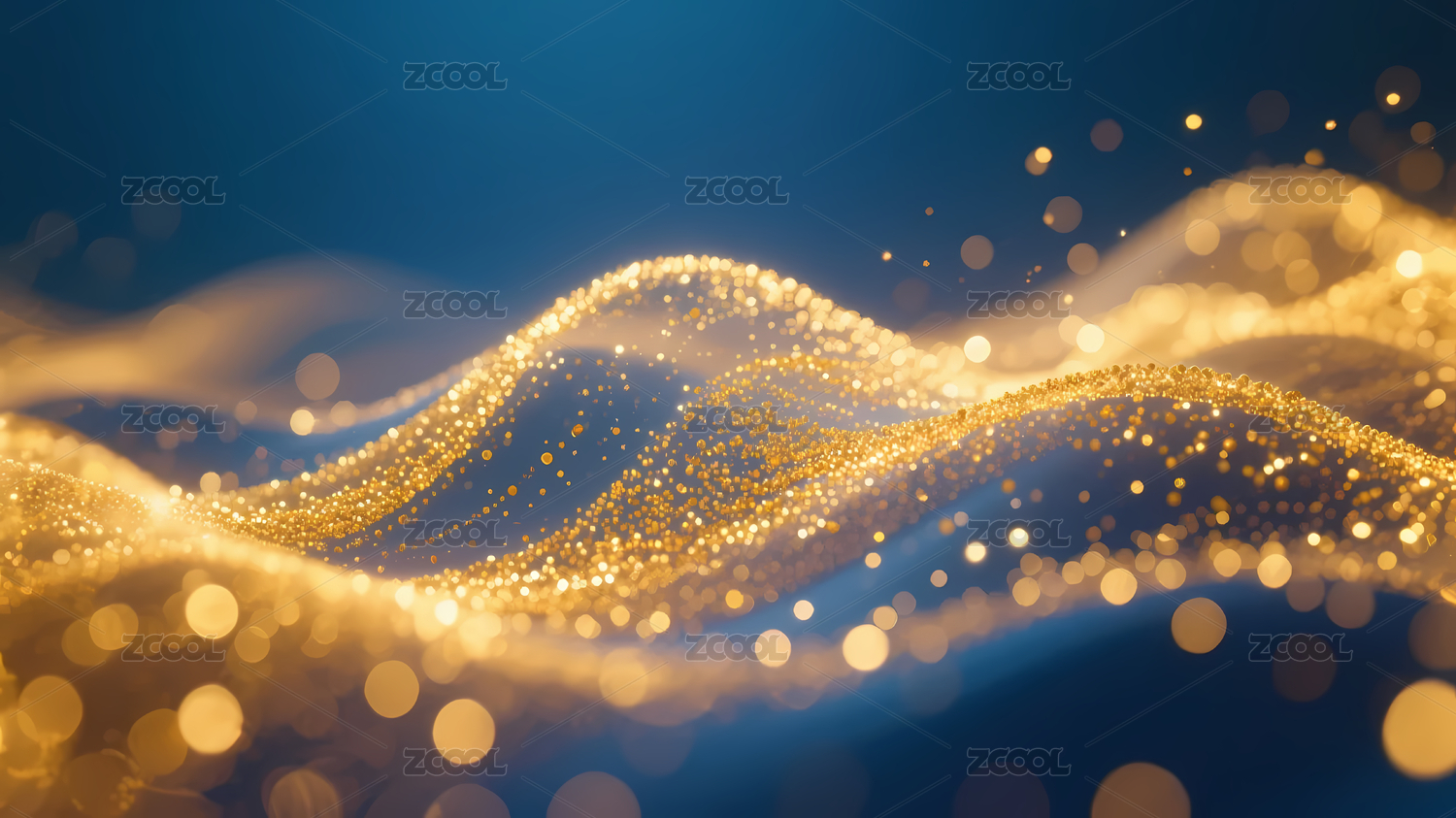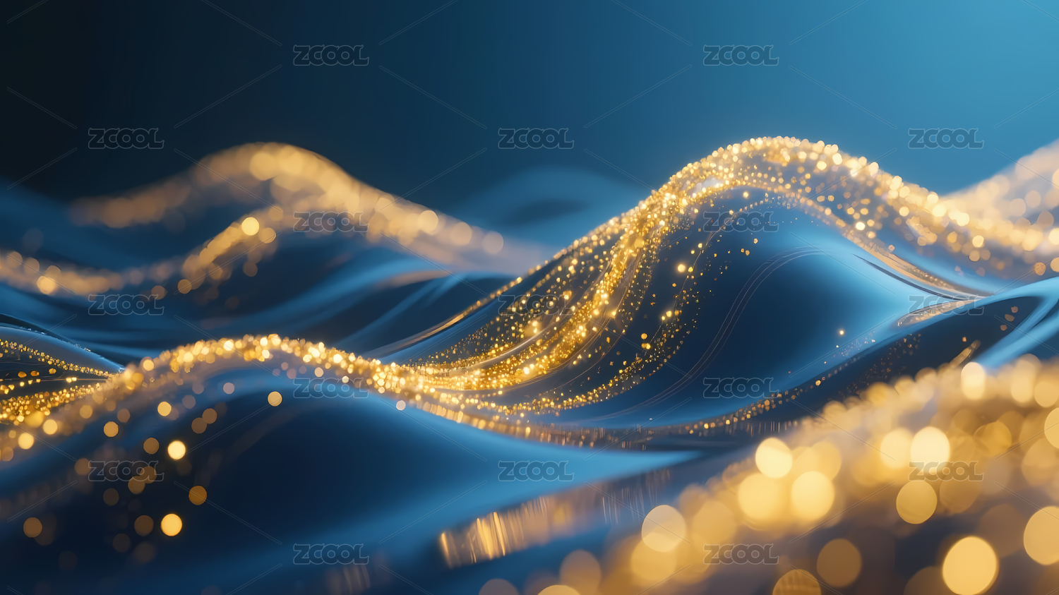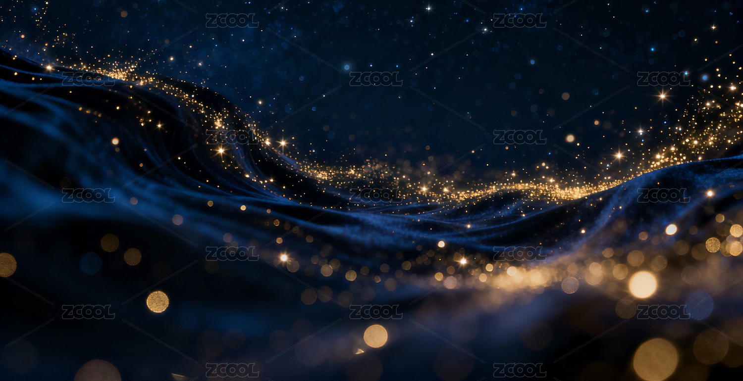 蓝色波浪纹理与金色光点