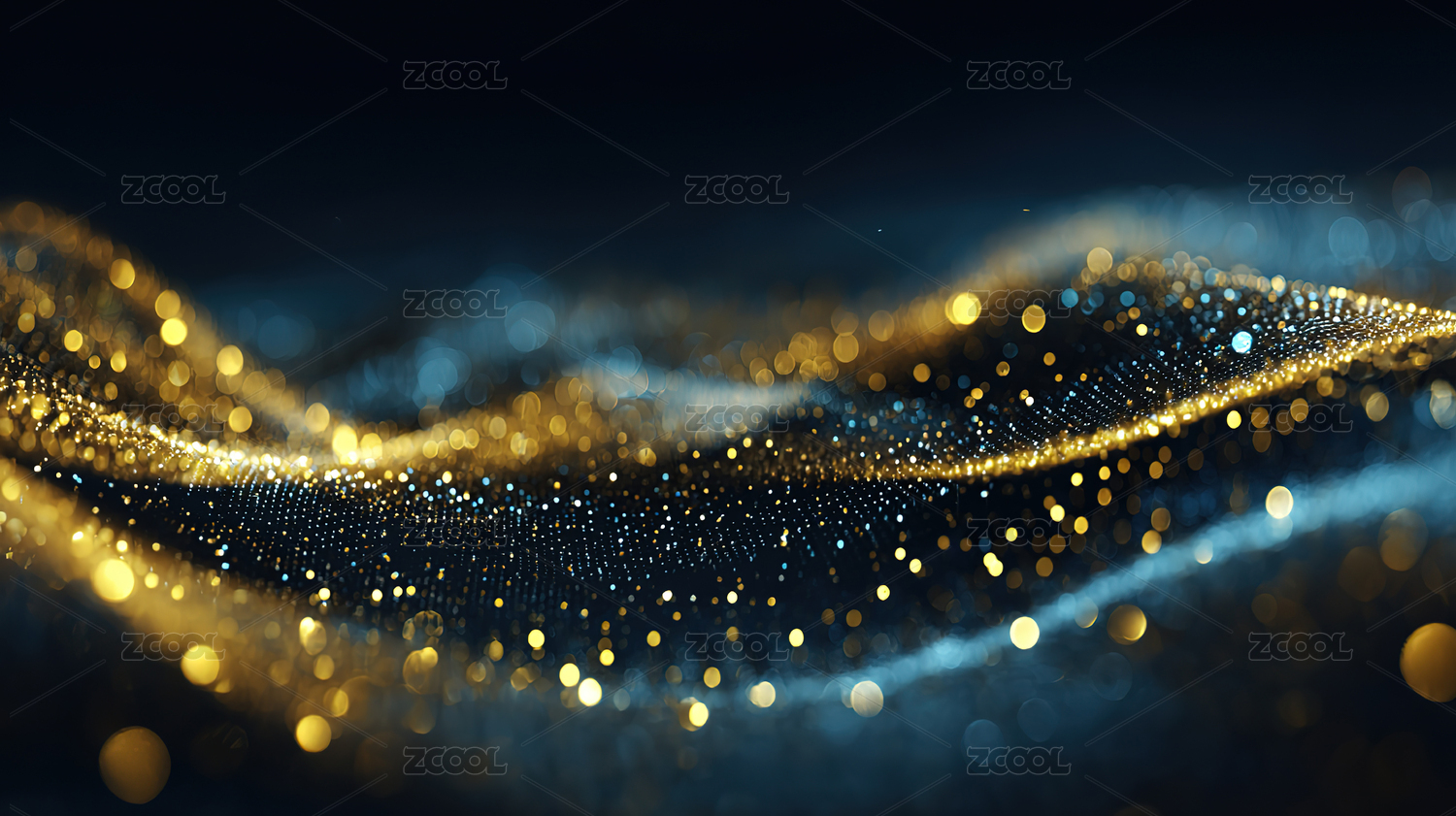 金色与蓝色粒子波浪背景