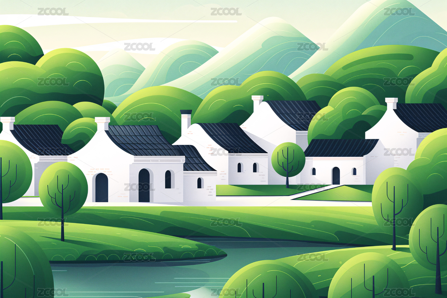 中国风古楼建筑传统国风古建筑国潮插画背景