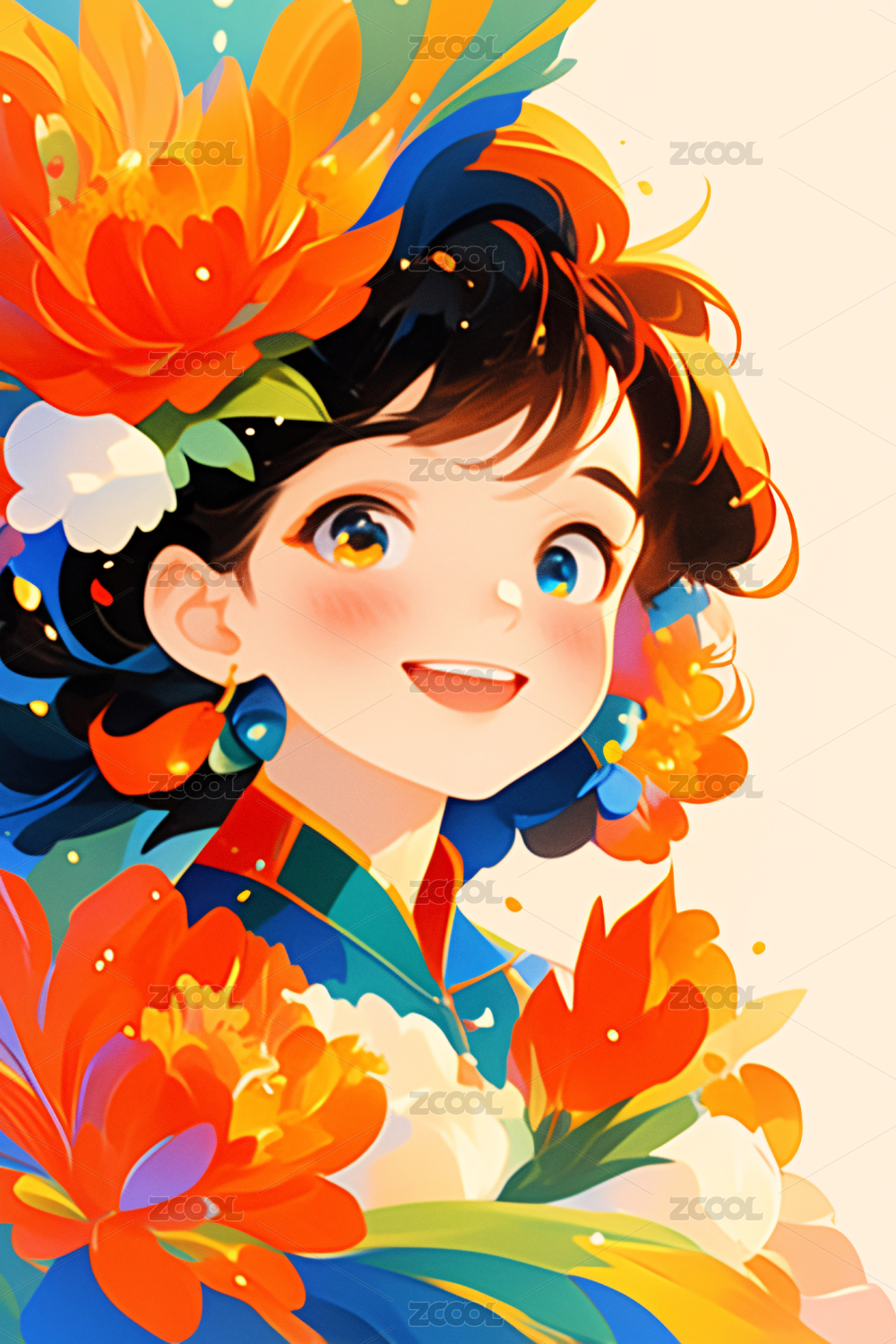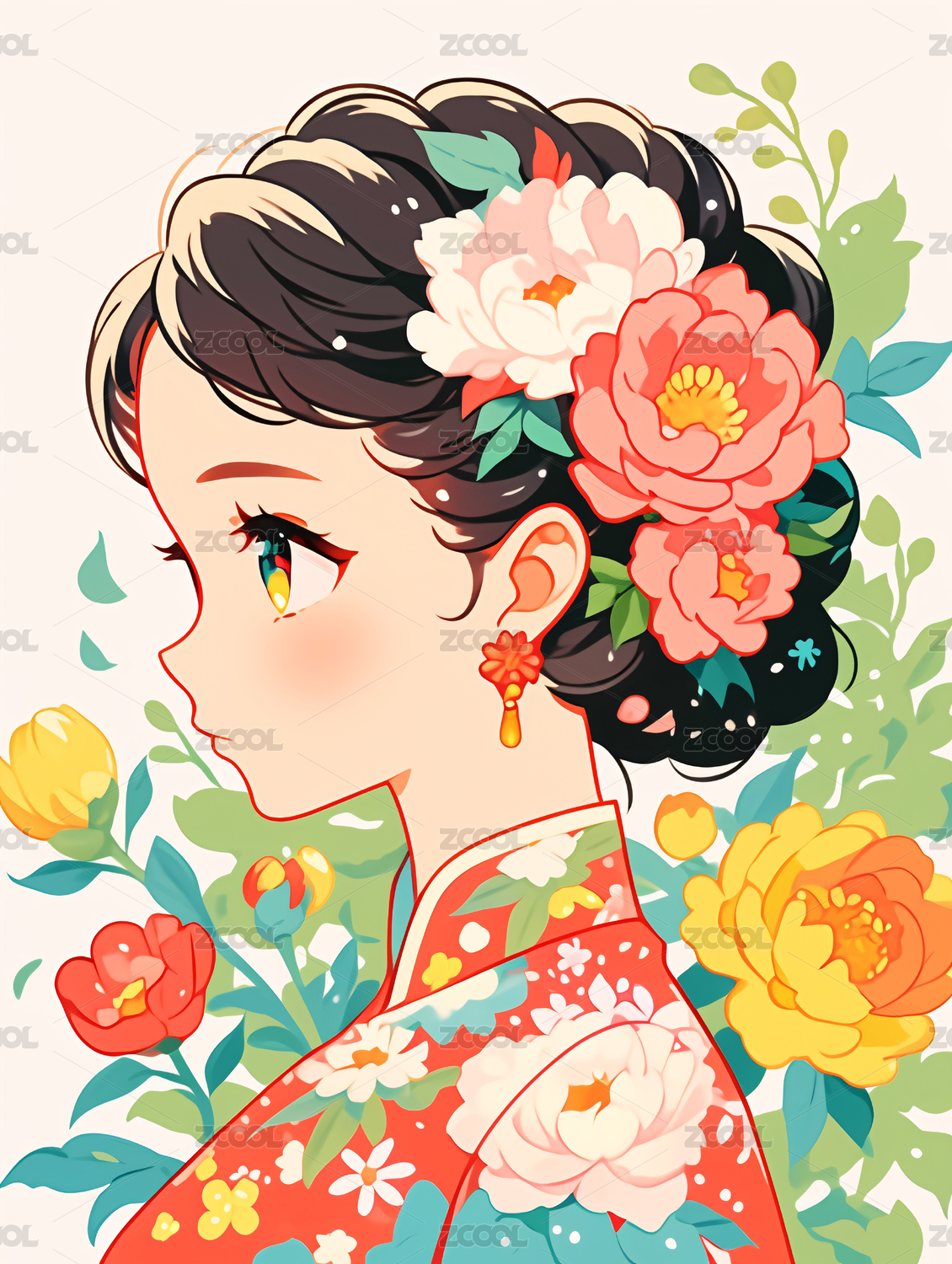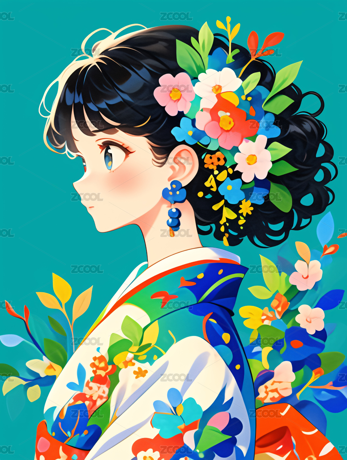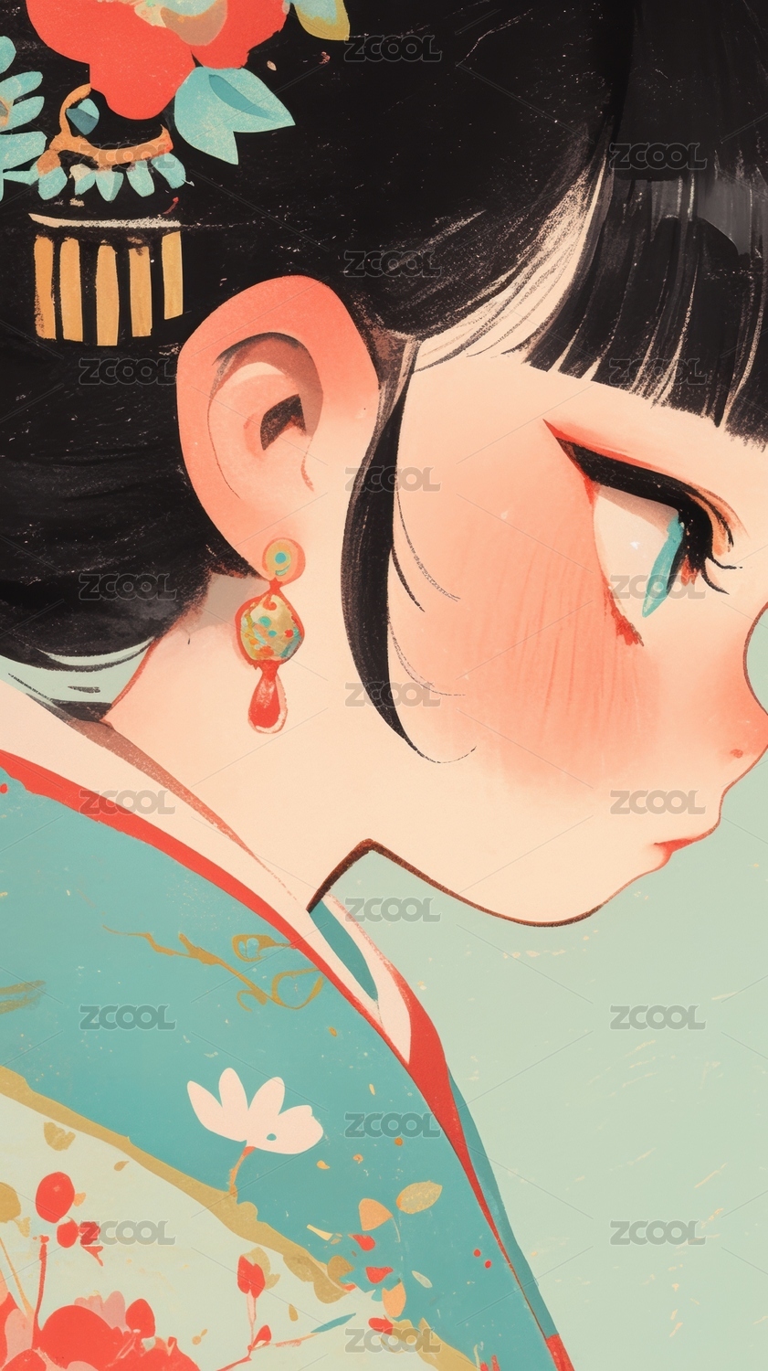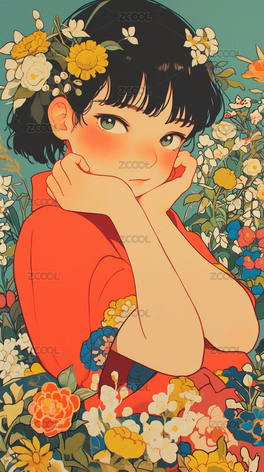 插画,春天,节气,女孩,春分,春季,立春,户外,绿色,节日