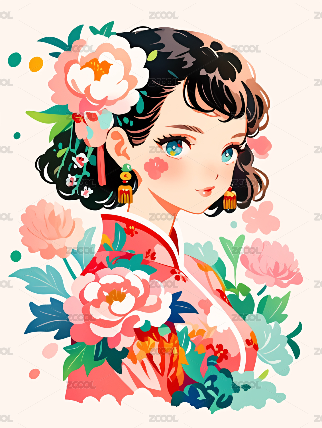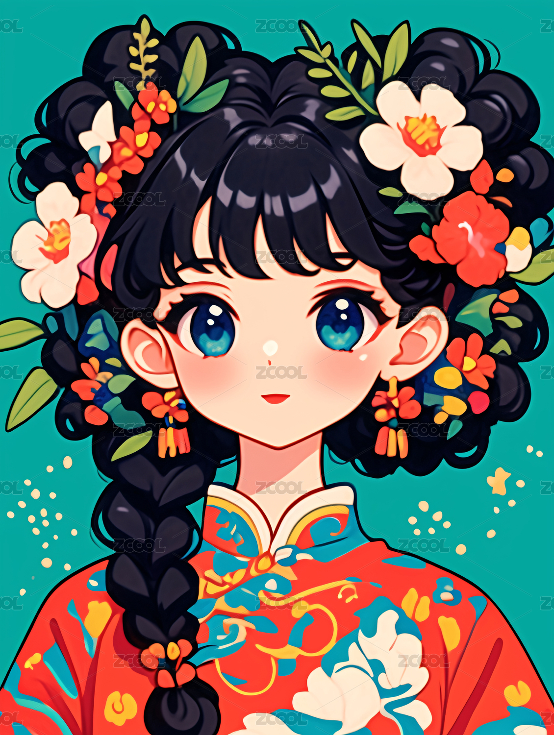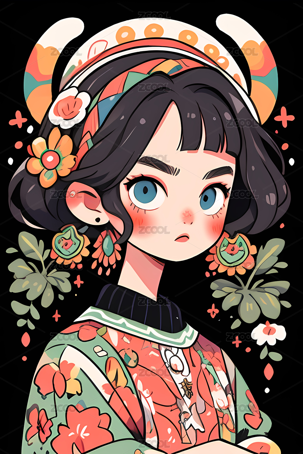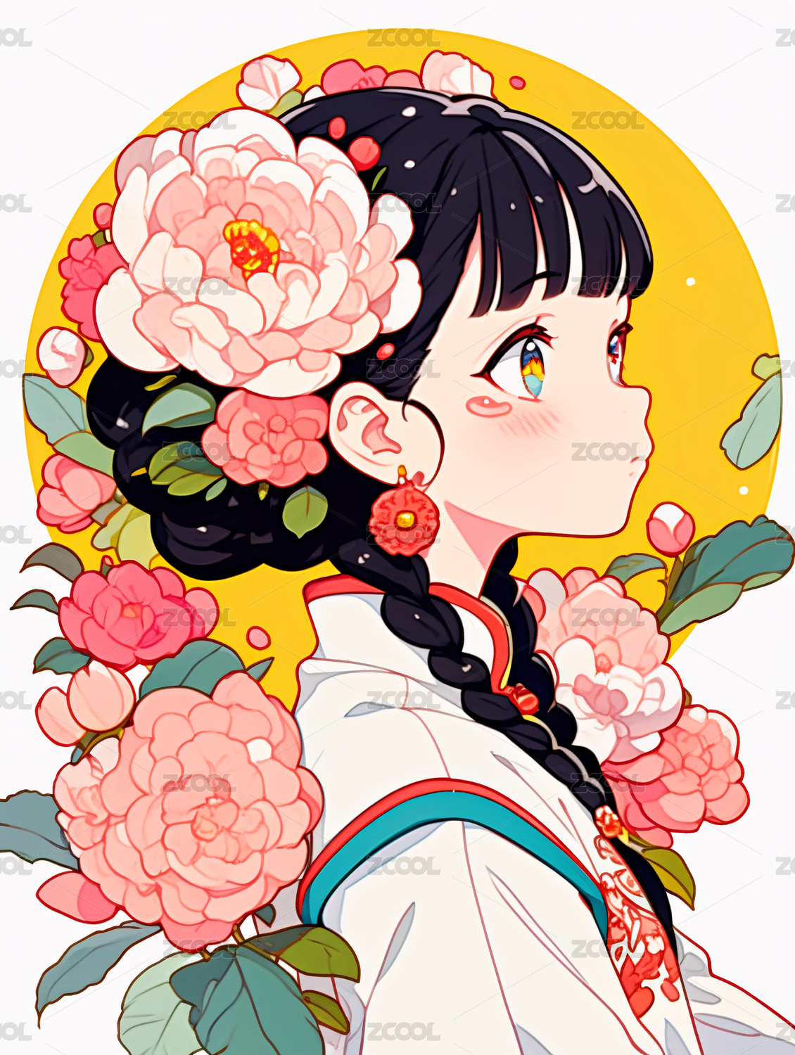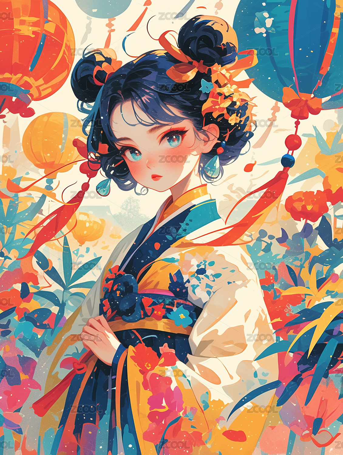 插画,春天,节气,女孩,春分,春季,立春,户外,绿色,节日