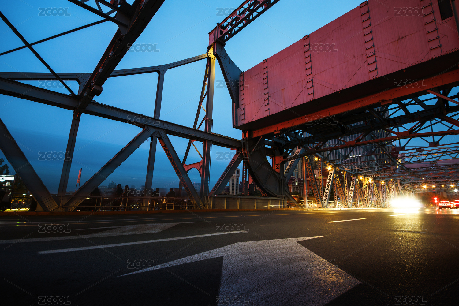 上海外白渡桥飞驰的汽车尾灯形成的光的轨迹