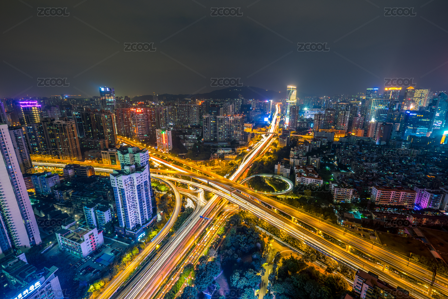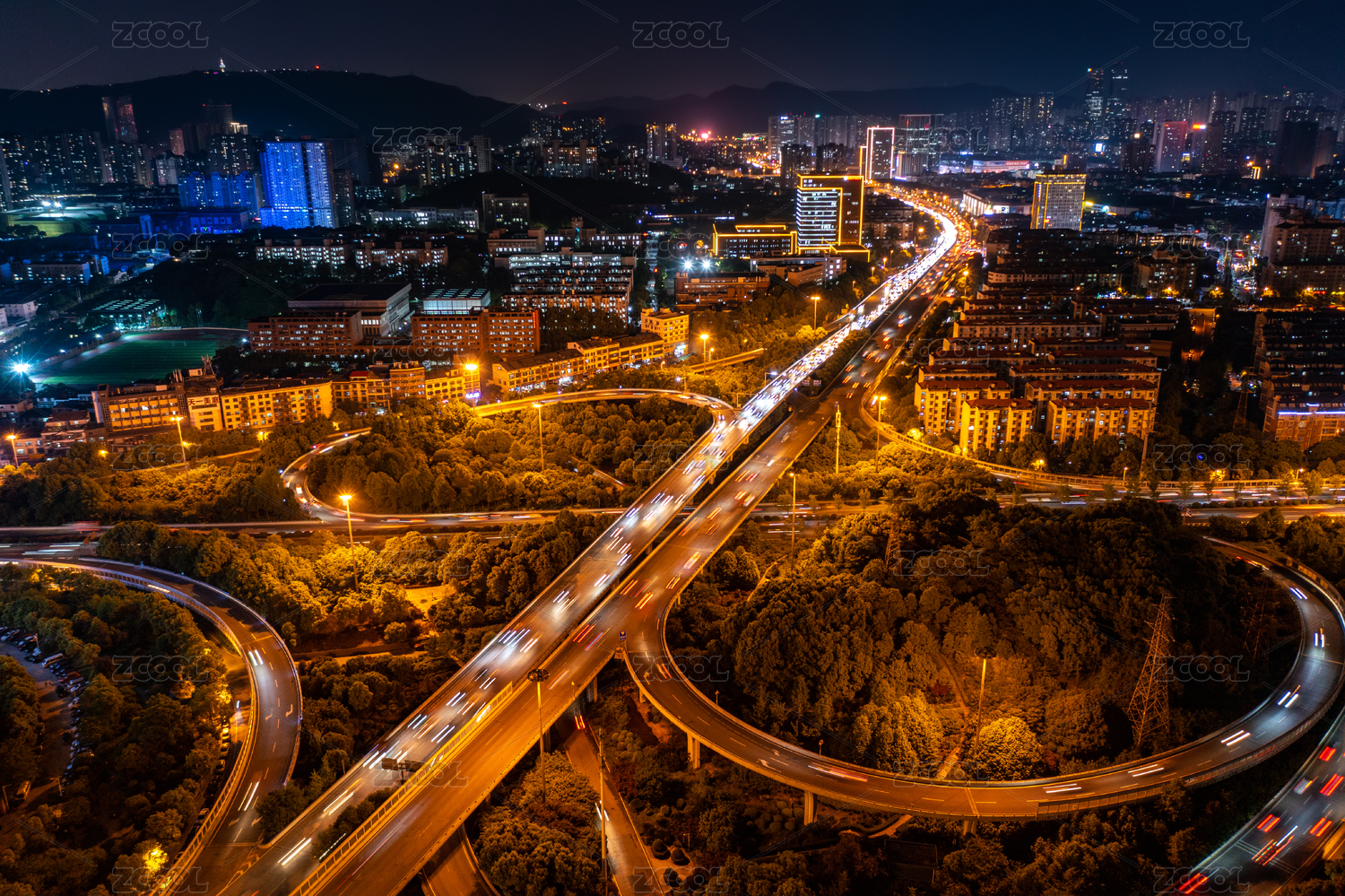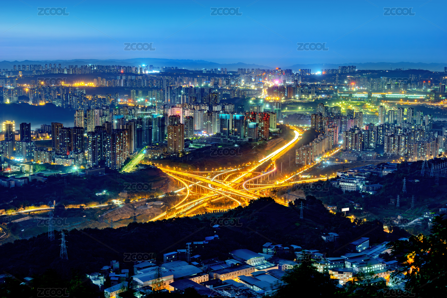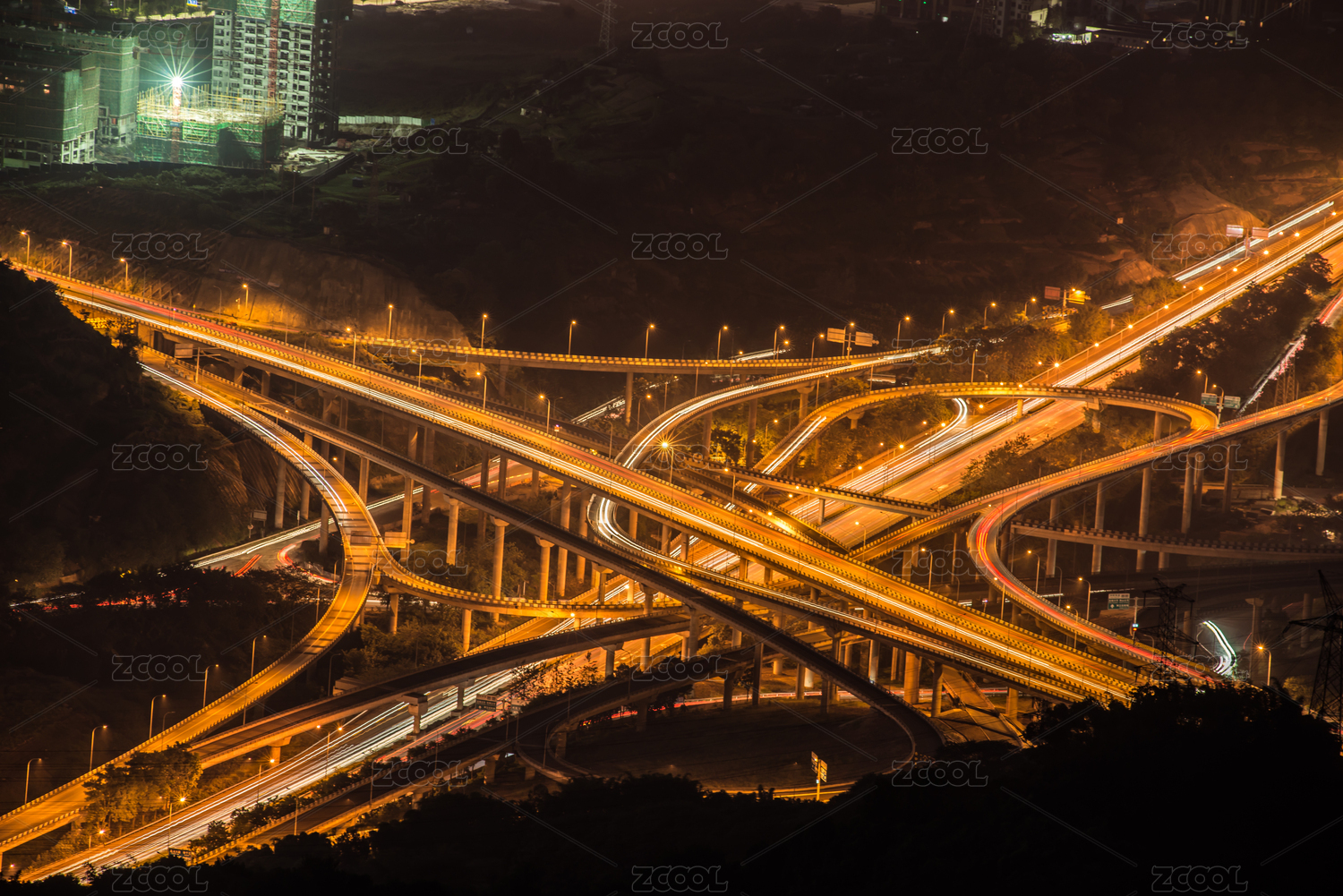 傍晚时分的城市立交桥夜景和繁忙的车流