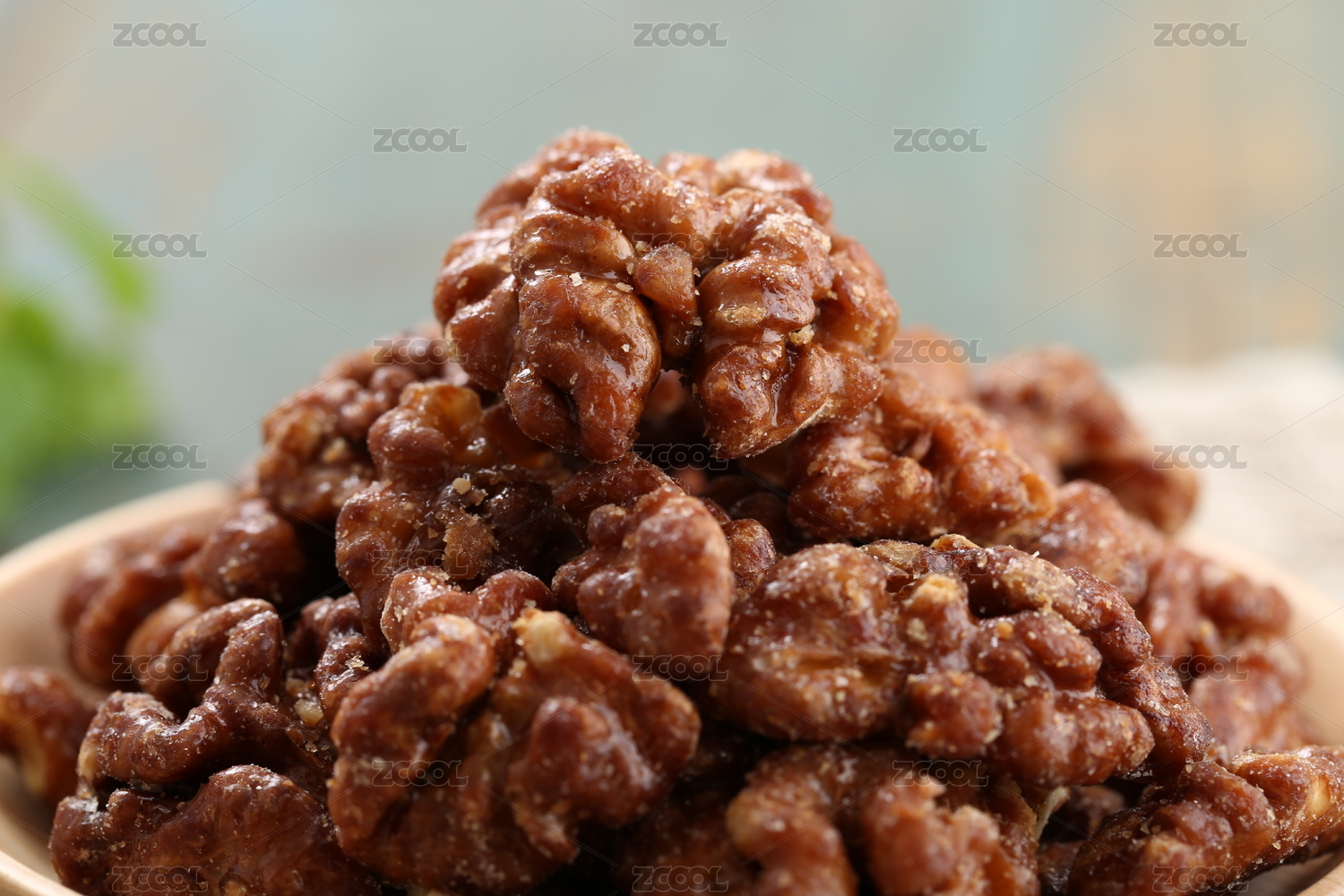 传统小吃琥珀核桃仁摆放在桌面上特写