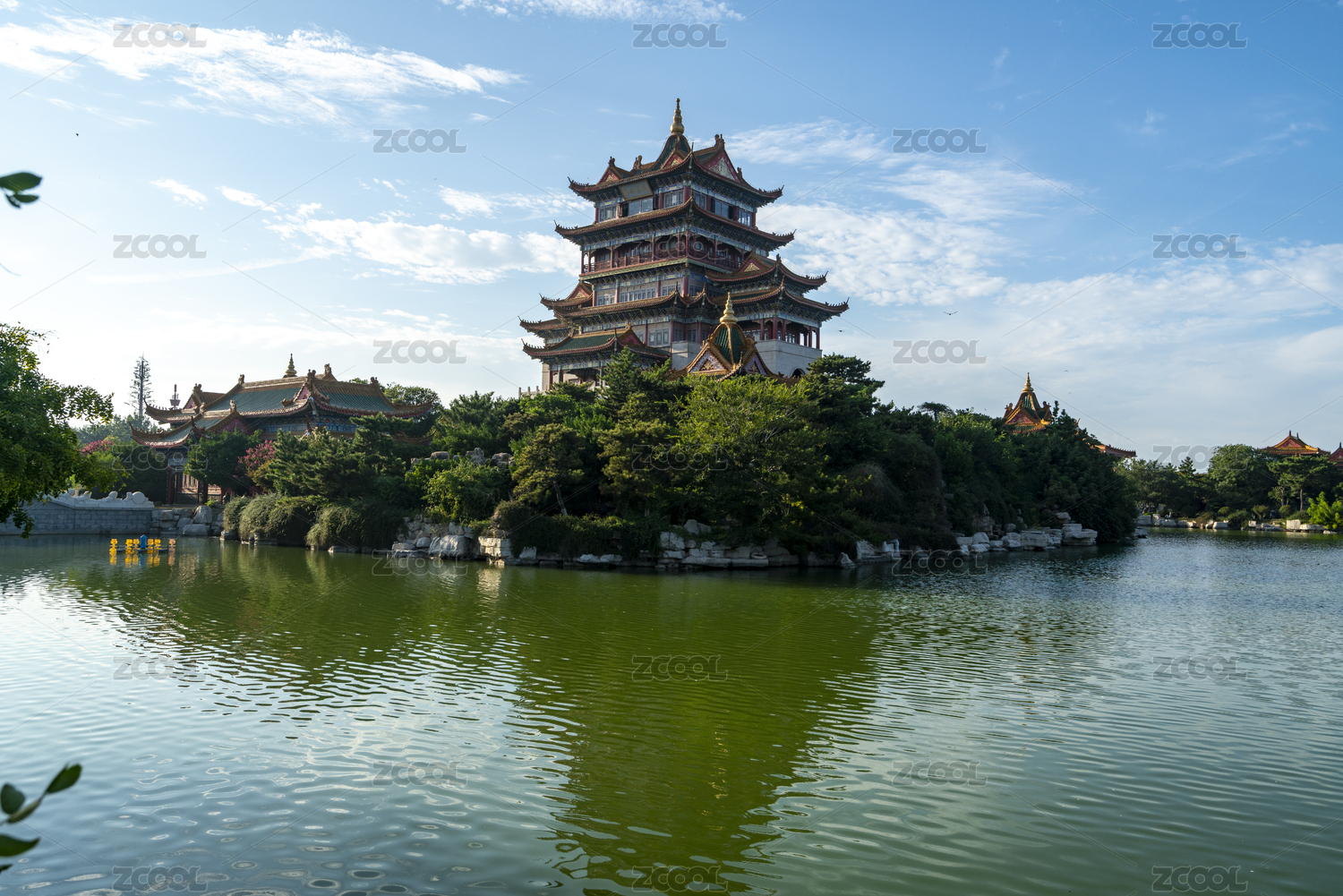 蓬莱三仙山,园林,景观,湖,城堡,建筑,古建筑,旅游景点,岛,桥