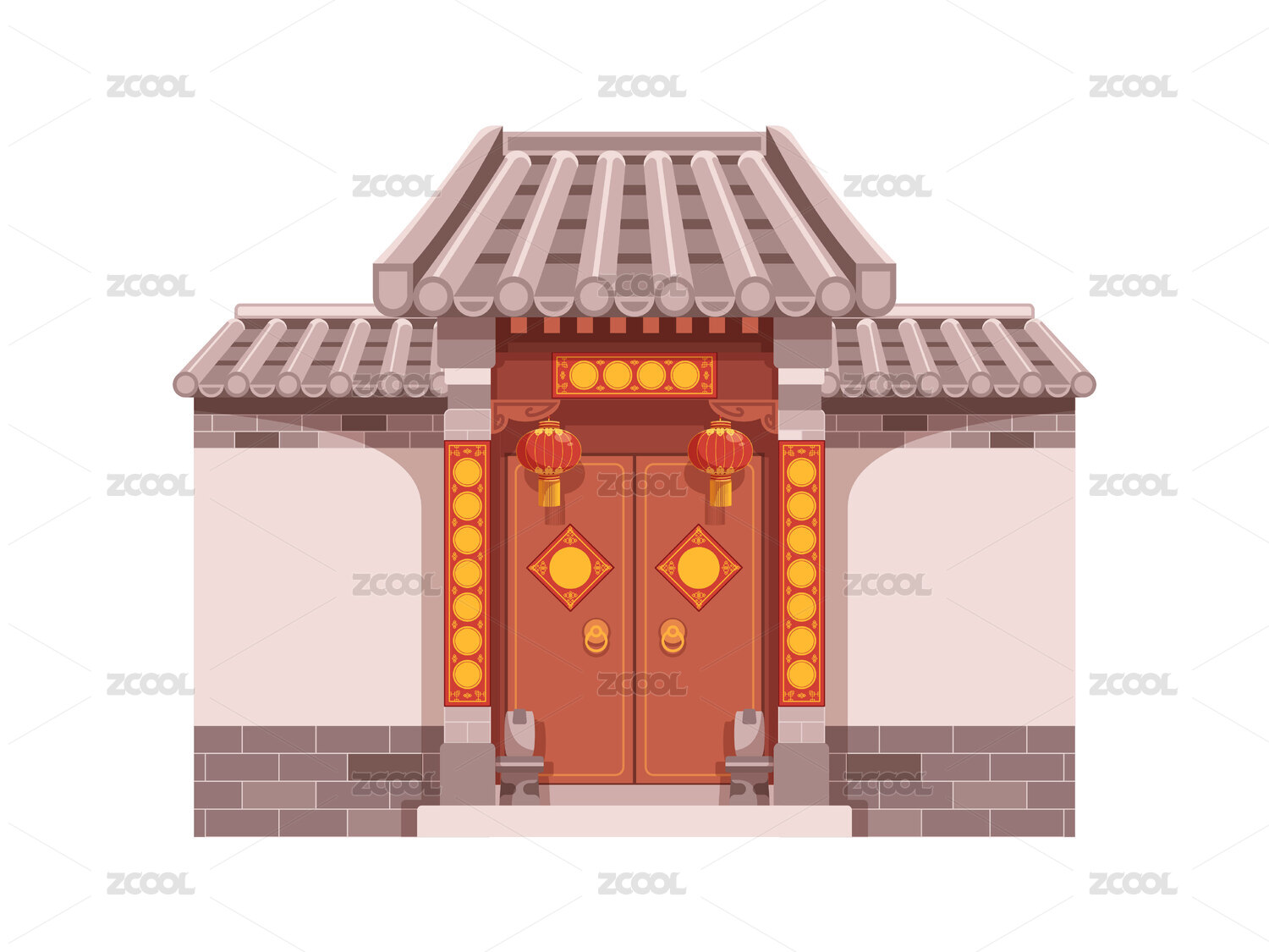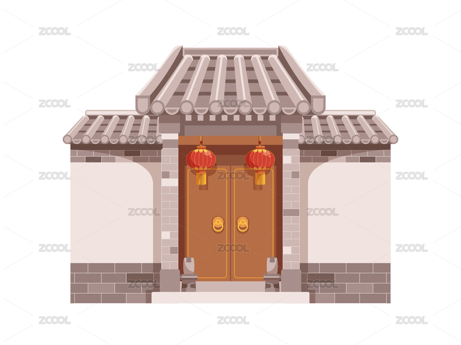 扁平化中国古代建筑木质门